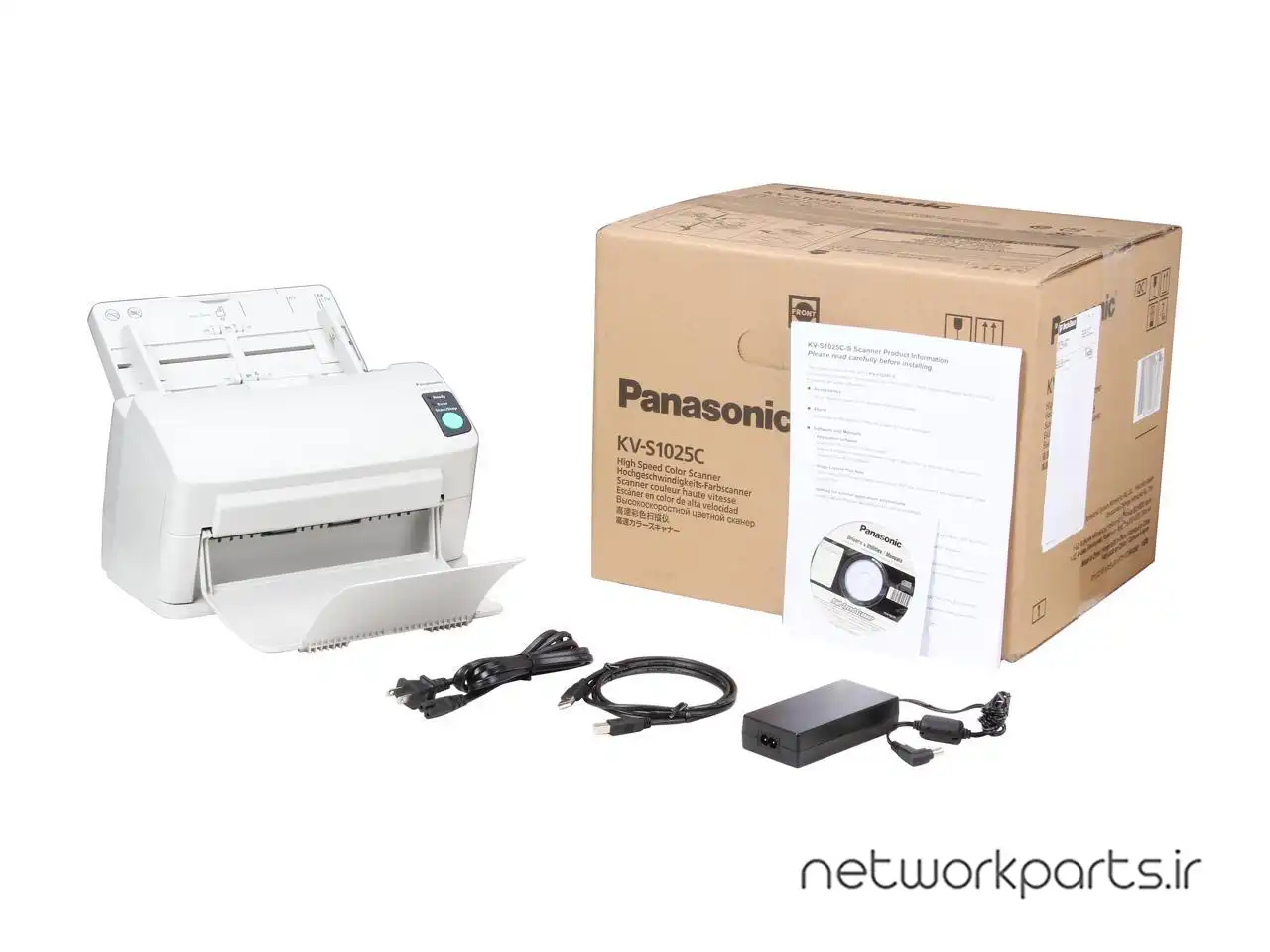 ویژگی ها | Auto Erasure Security, Beyond standard documents, the KV-S1025C-S also features the ability to scan continuous documents of up to 100" in length such as EKG reports, as well as hard embossed plastic cards such as identific, Featuring a small footprint, a low-noise index and a sleek, modern design, the KV-S1025C-S fits comfortably into any office environment. Whether it`s on a tight countertop, at a bustling ER workstati, Offering a stunning array of speed, versatility and reliability, Panasonic`s KV-S1025C-S workgroup scanner is an ideal choice for any scanning need. With the ability to scan virtually any type of doc, Scanning situations requiring the highest levels of security are benefitted by Auto Erasure Security. Scanners featuring this high security technology automatically erase all data from the scanner`s |