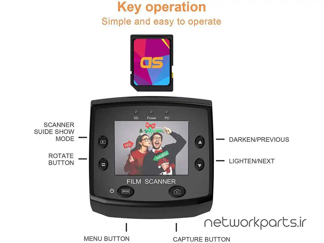 محتویات بسته بندی | Digital Scanner USB Cable Video cable Negatives (Film) Holder Positives (Slide) Holder Rapid slide feeder US DC5V Adapter Cleaning Brush User Manual |
