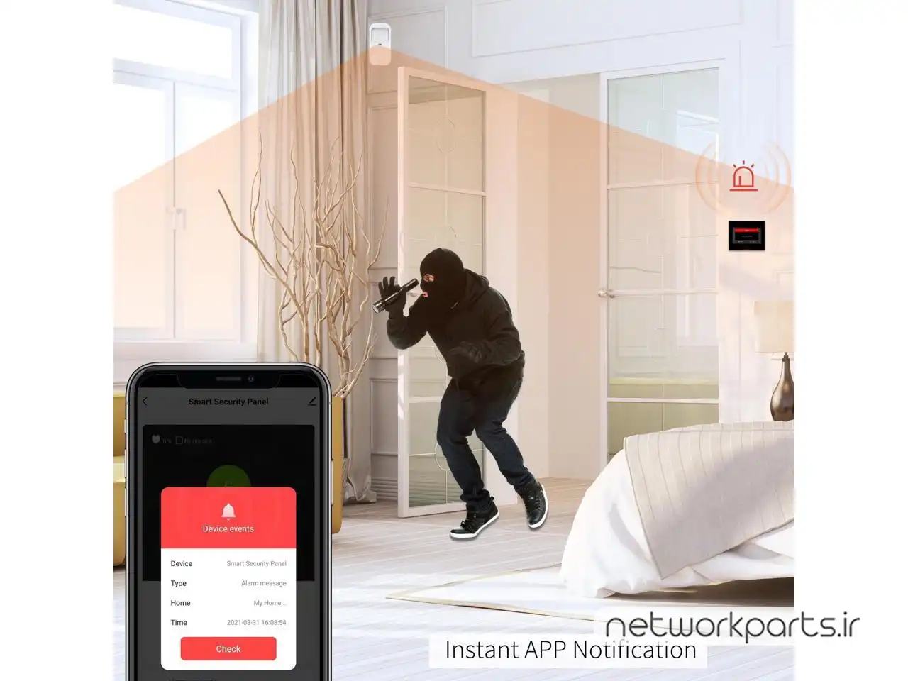 محتویات بسته بندی | Security Panel×1, Entry Sensor×4, SOS Button×1, Remote Control×2, Wired Siren×1, PIR Motion Sensor×1 |