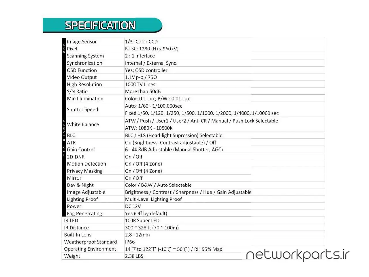 دوربین مدار بسته آنالوگ (Analog) بلو سی سی تی وی (BlueCCTV) مدل 1M10HVF-2812W 1.3MP