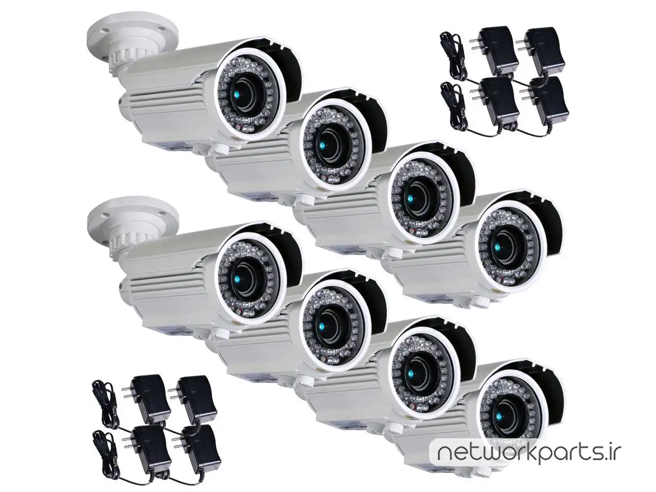 محتویات بسته بندی | (8) Bullet Camera with Bracket, (8) Power Supply, Free Warning Sticker |