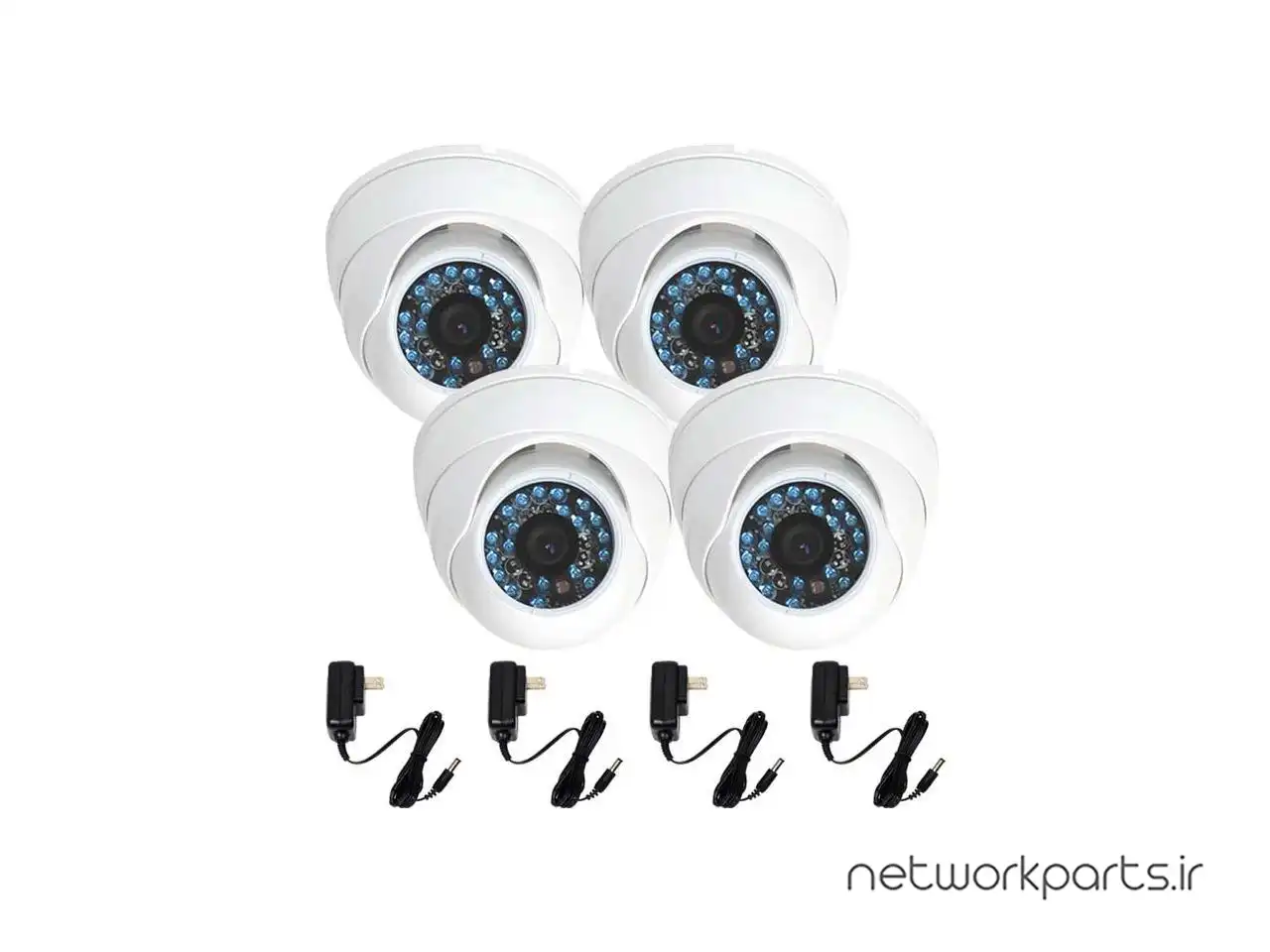 محتویات بسته بندی | (4) Dome Camera, (4) Power Supply, (4) Extension Cable, Free Warning Stickers |