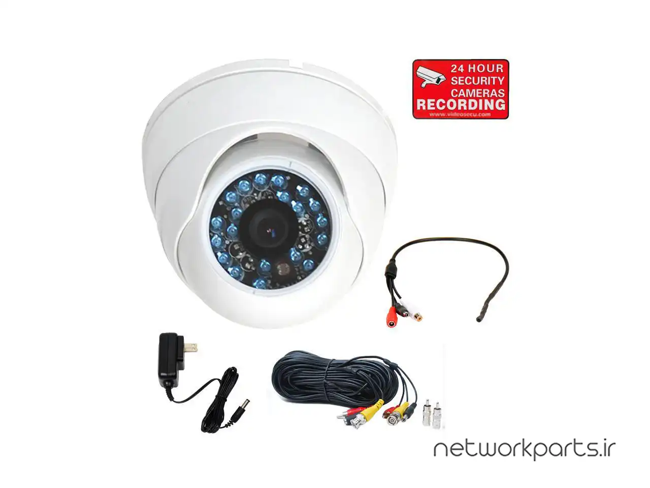 ویژگی ها | • Image Sensor: 1/3 inch SONY CCD, Color DSP • IR Range: 65 feet • Horizontal Resolution: 600 TV Lines • Lens: 3.6 mm wide angle • Advanced Day Night Mode: provides color images in light co |