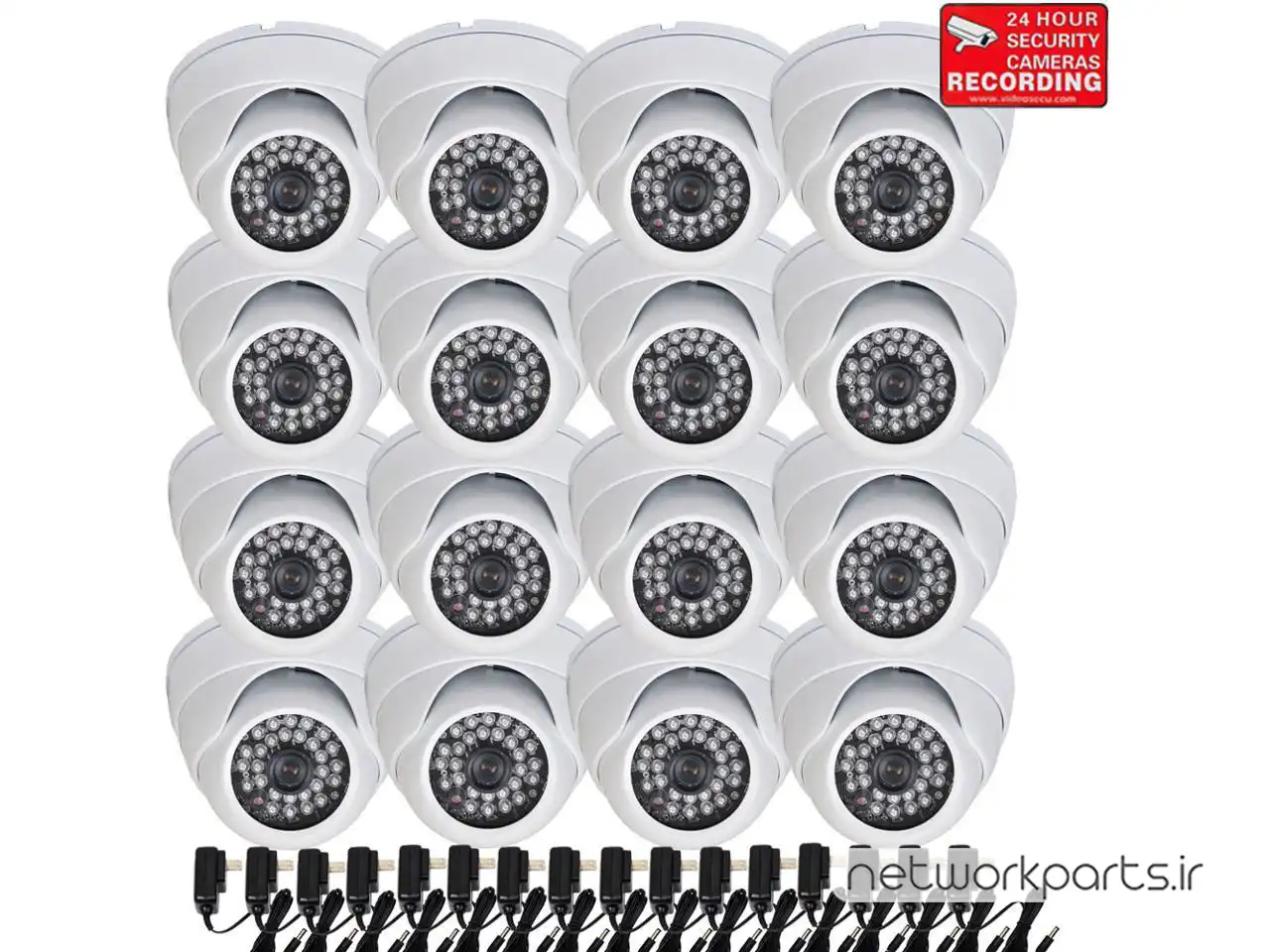 محتویات بسته بندی | 16x Security Camera, 16x Power Supply and Free Warning Sticker |