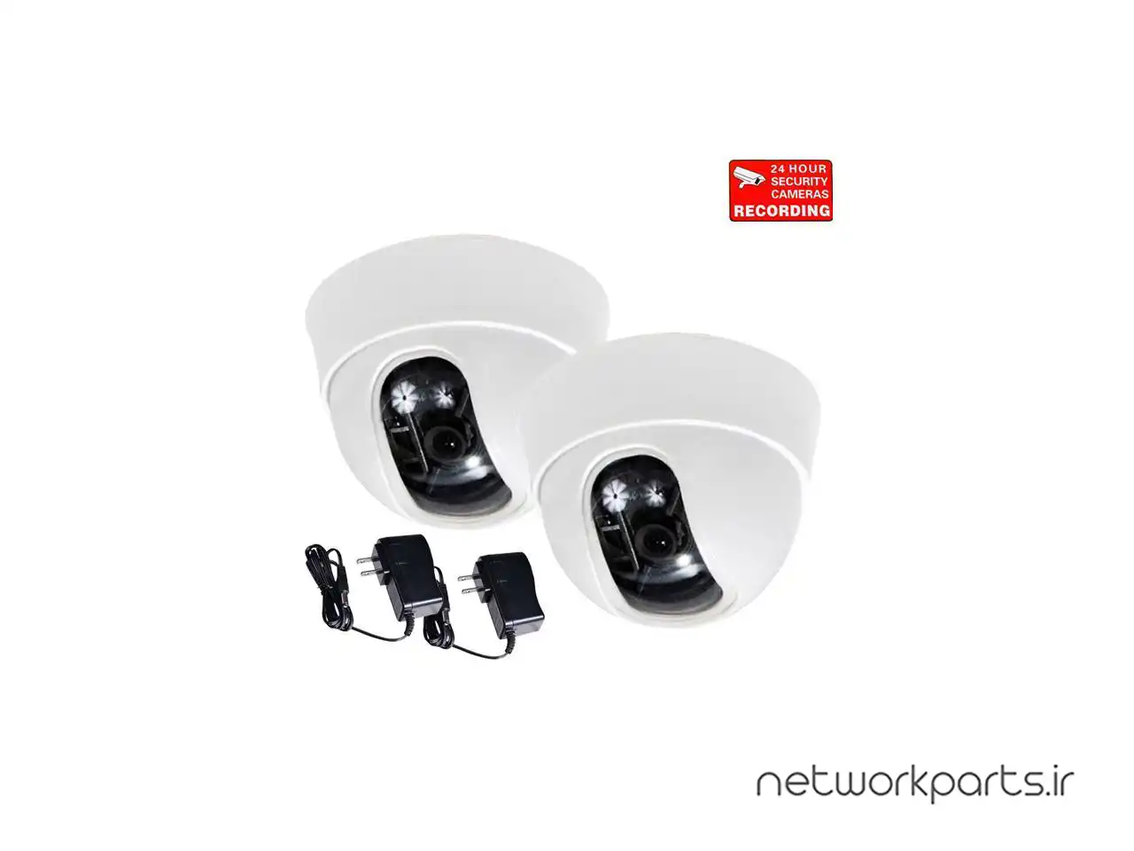 محتویات بسته بندی2x Dome Camera, 2x Power Supply and Free Warning Sticker