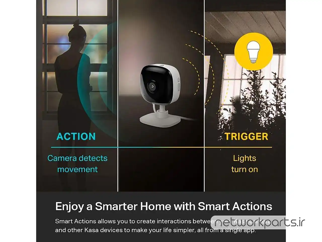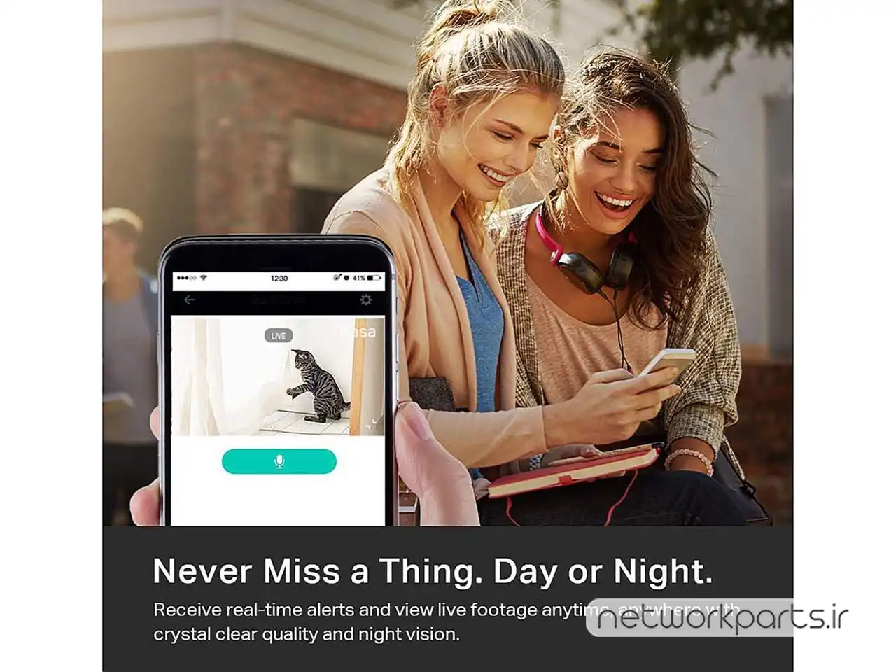 ویژگی ها24/7 Local Recording - Save your footage on a Micro SD card* up to 64 GB and play back with your Kasa Smart app., Activity Zones - Configure customizable zones for more meaningful alerts. Place zones around your front door, kitchen, or anywhere you like to focus your camera's view., Crystal Clear Video, Instant Activity Alerts, Night Vision - Even in the dark, the Kasa Spot has night vision up to 30 feet. Never miss a thing at night and still get the same high-quality video you're used to., Remote Live View - Keep an eye on what's important to you real-time from anywhere with the Kasa Smart app. Even stream live video to any Alexa or Google Assistant supported display, like a Fire TV, E, Two-way Audio - Use crisp two-way audio to communicate with nosy roommates, family, or even mischievous pets.