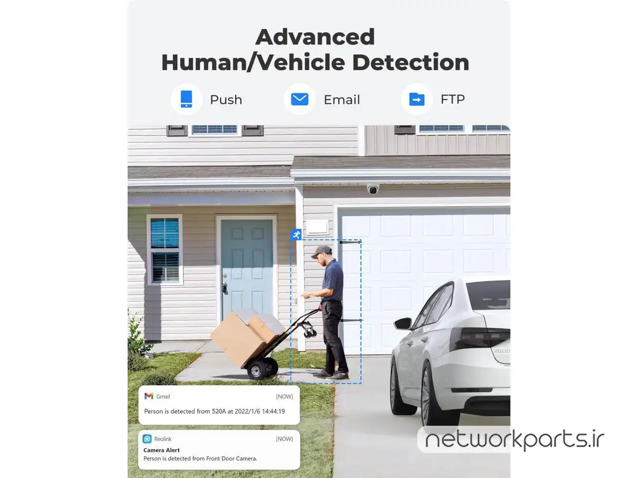 ویژگی هاSmart Person/Vehicle Alerts, Power over Ethernet, 100ft Night Vision, Audio Recording, time-lapse, Remote Access, Smart Motion Detection and Alerts