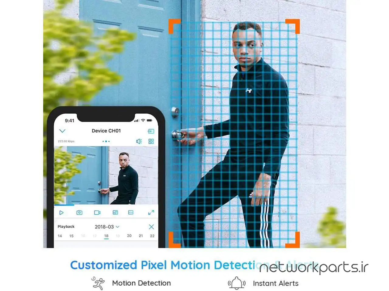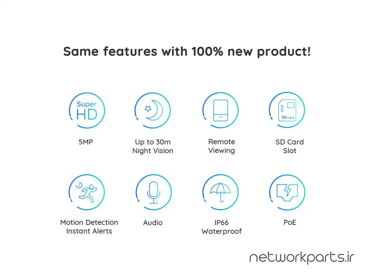 ویژگی ها | 5MP HD, IR Night Vision, Motion Detection, Remote Access, Work with Google Assistant, SD Card Slot support motion recording |