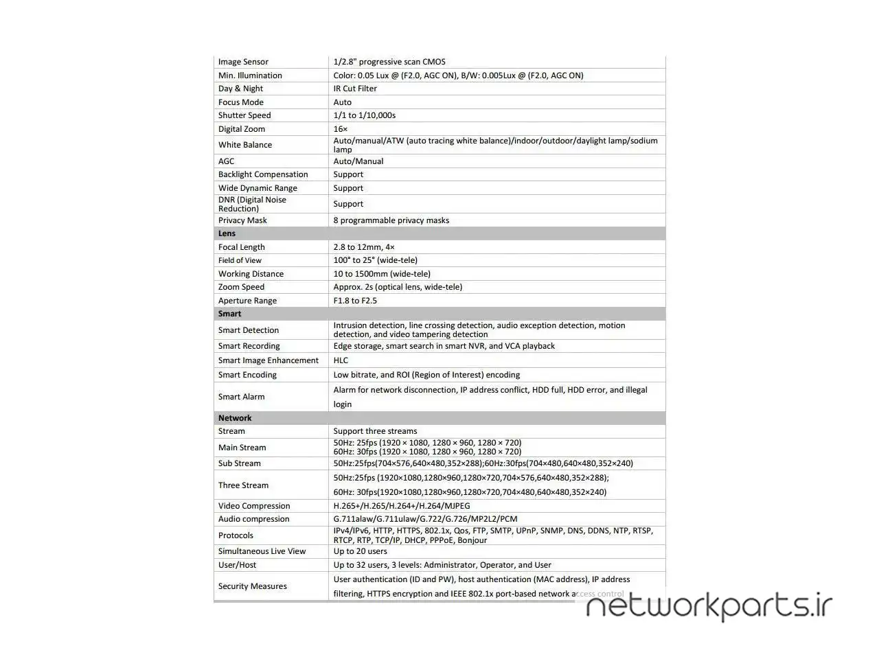 مدل محصول | DS-2DE2204IW-DE3/W |