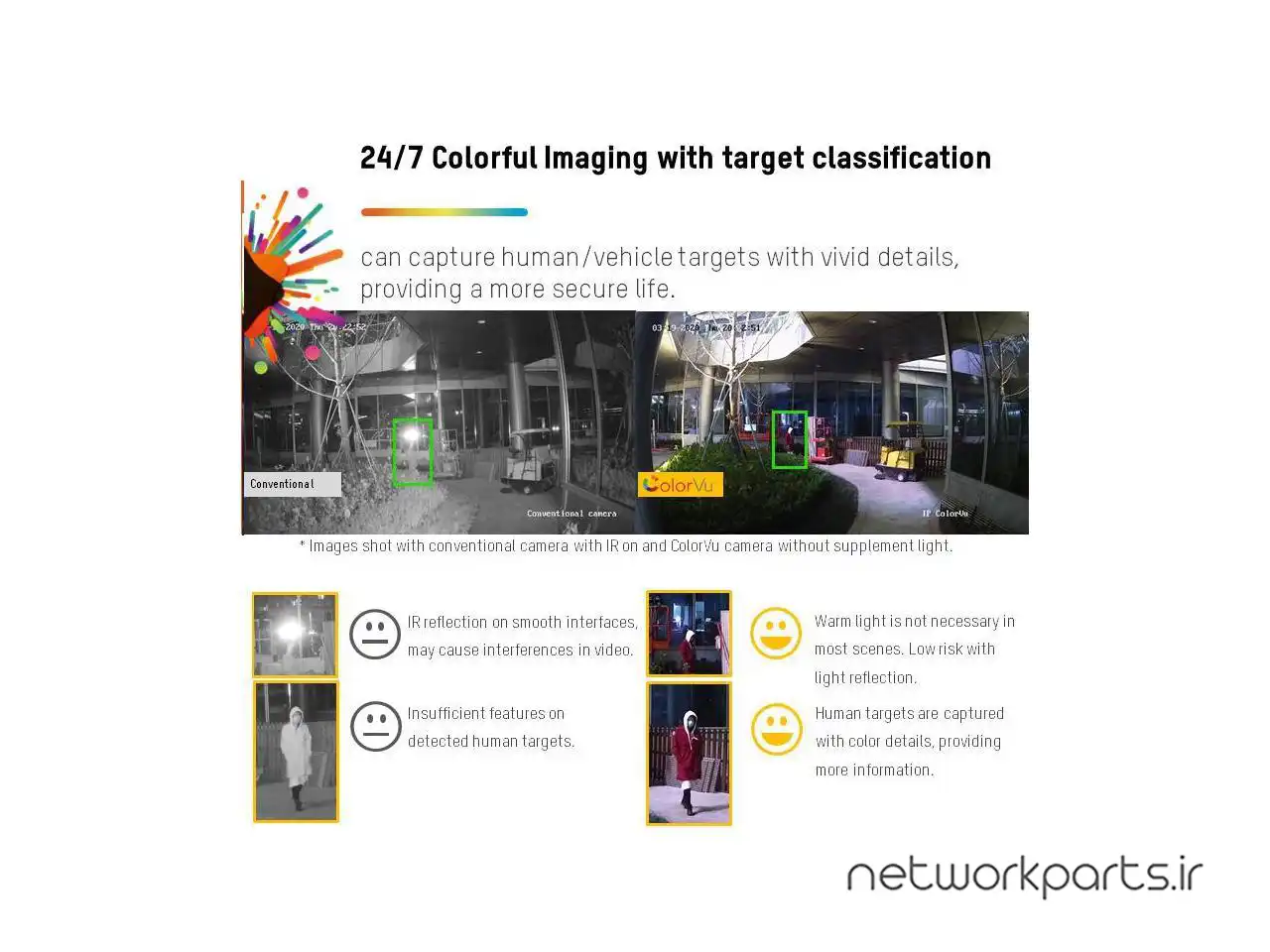ویژگی ها | 24/7 colorful imaging, 8 MP Panoramic ColorVu Fixed Bullet Network Camera, Active strobe light and audio alarm to warn intruders off, Clear imaging against strong backlight with 120 dB true WDR technology, Efficient H.265+ compression technology, Focus on human and vehicle classification based on deep learning, High quality imaging with 8 MP resolution, Hikvision IP Camera Externa DS-2CD2T87G2P-LSU/SL 8MP Panoramic ColorVu 4K Bullet Stroble Light Audio Alam POE CCTV Surveillance, One image that presents all the scenes covered by the camera, Water and dust resistant (IP67) and vandal-resistant (IK10) |