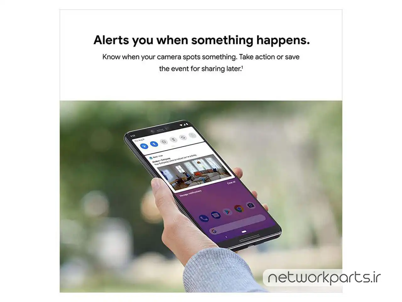 ویژگی ها | Compatible with Google Home, Easy 60-second setup, Get alerts on your phone, Night Vision helps you See in the dark, Stream securely in full 1080p / 130 degree HD, Talk and listen-2way audios |