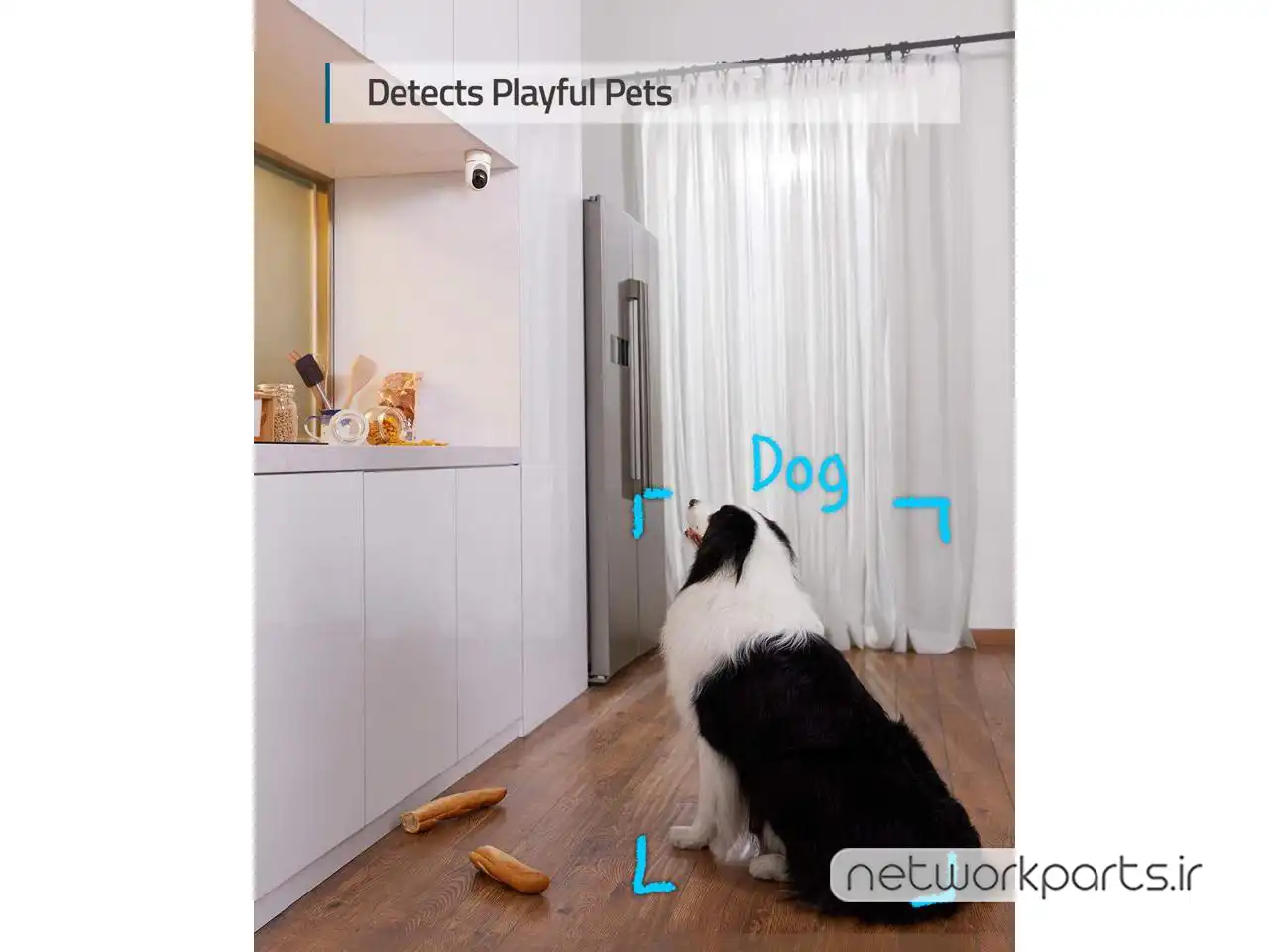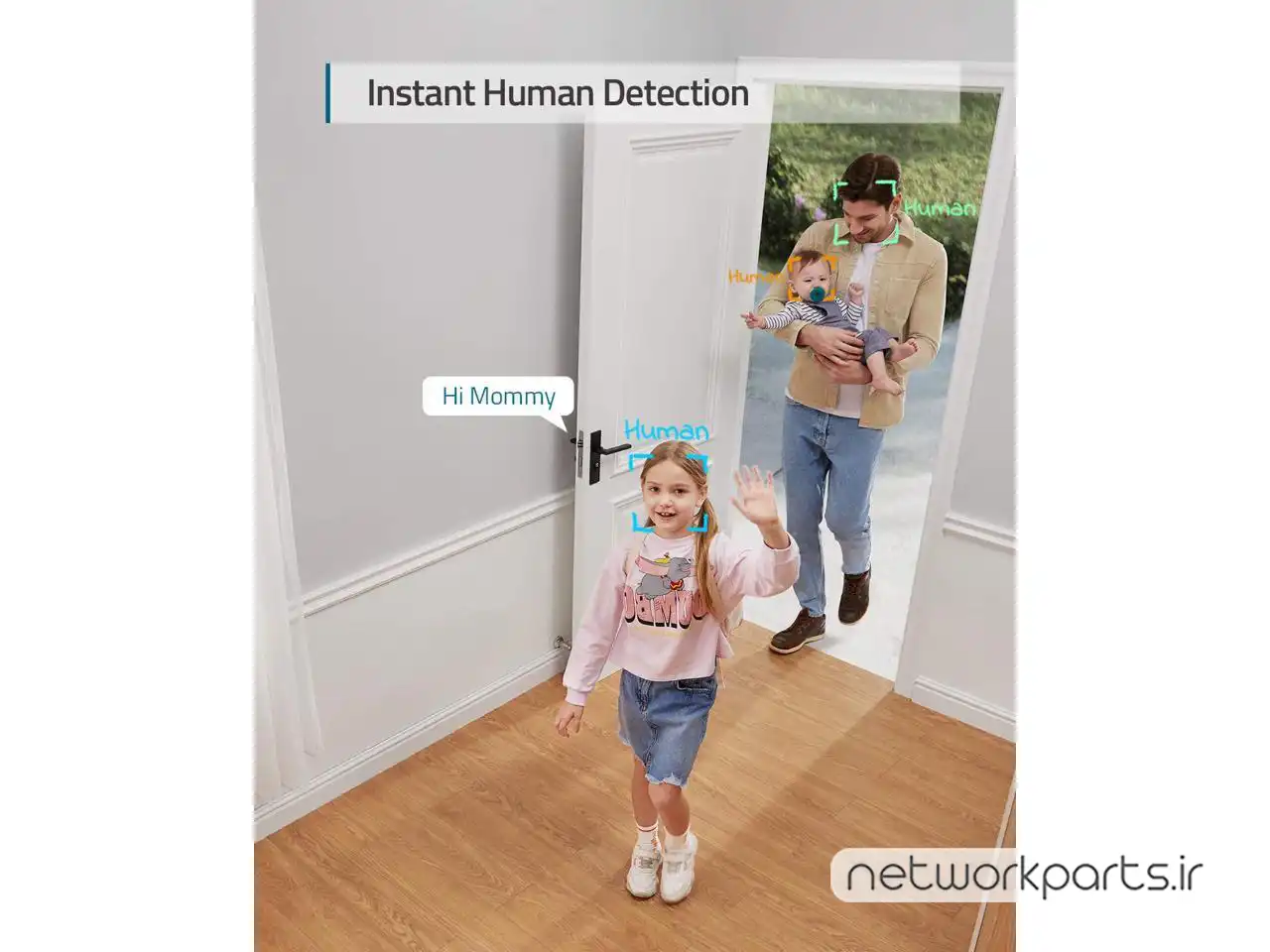 ویژگی هاCommunicate From Your Camera: Speak in real-time to anyone who passes via the camera's built-in two-way audio., Follows the Action: When motion is detected the camera automatically tracks and follows the moving object. Pan the lens 360° horizontally or tilt it 96° vertically to get a clear view of the whole, Relevant Recordings: The on-device AI determines whether a human or pet is present and only records when an event of interest occurs., Smart Integration: Connect your Indoor Cam to Apple HomeKit, the Google Assistant, or Amazon Alexa for complete control over your surveillance. (HomeKit available via update. When opening HomeKit, us, The Key is in the Detail: View every event in up to 2K clarity (1080P while using HomeKit) so you see exactly what is happening inside your home.