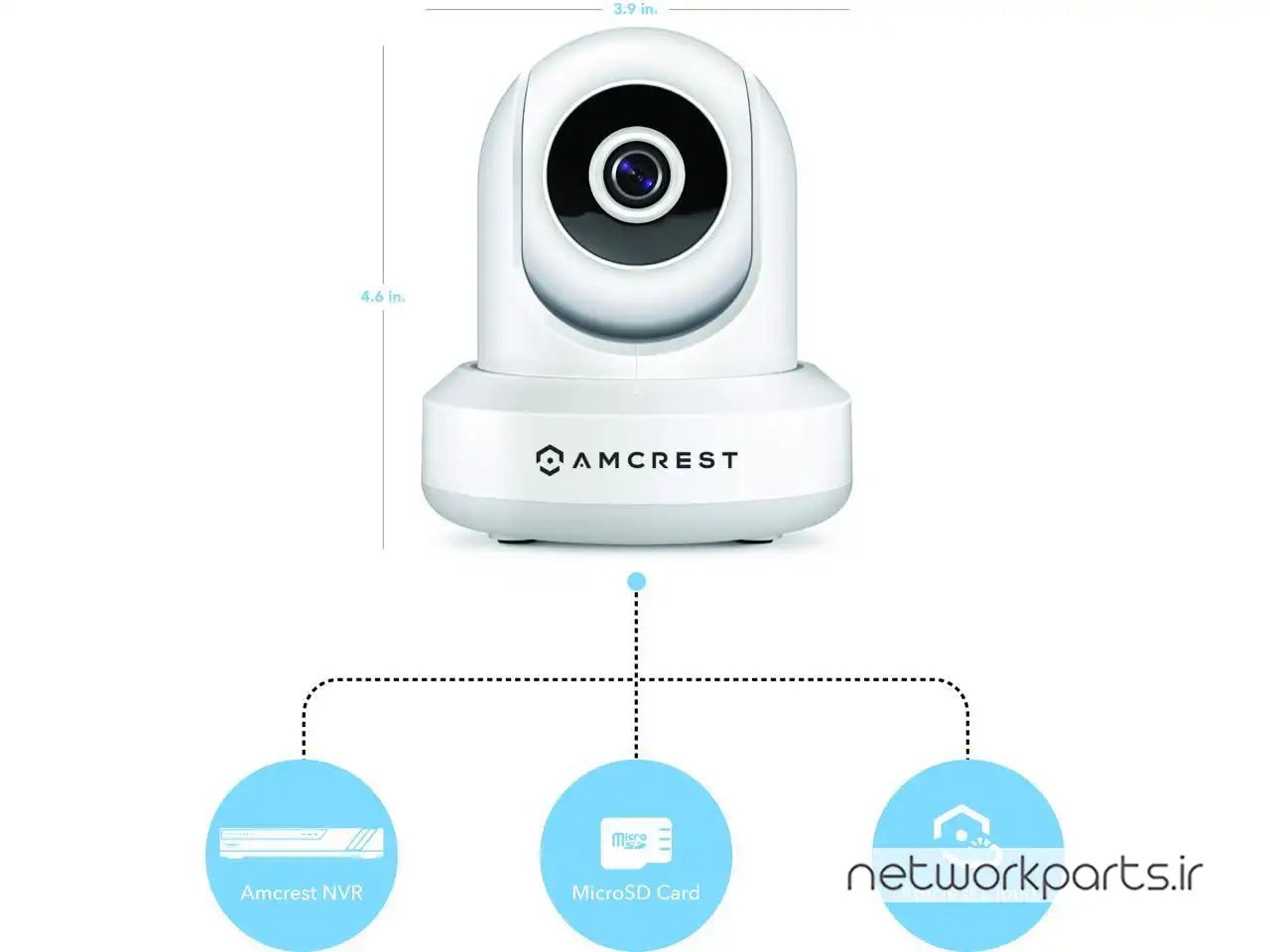ویژگی هاFeatures Sony image sensor and Ambarella processor. All cameras CE, FCC & UL certified with UL compliant 10-foot power supplies, Quick WiFi Setup via iPhone or Android Smartphone using the Amcrest View App (Included). Seamlessly Stream Video and Two Way Audio Directly to Your Smartphone, Tablet, Apple Mac or Windows PC, Remarkable Field of View with Super Wide 90 degree Viewing Angle, Remote Pan / Tilt, Intelligent Digital Zoom, and IR LED Night Vision Up to 32 feet, Stay in Touch with Two-Way Talk, Intelligent Motion Alerts, Email Alerts / Snapshots as well as Mobile and Web Apps (Safari, Firefox, IE Supported - Chrome Supported on Amcrest Cloud), Stunning Full HD 1080P Video at 30fps. Record and Playback via local microSD Card, Amcrest or ONVIF NVR, FTP Upload, and Blue Iris. Amcrest Cloud Video Recording Service Available