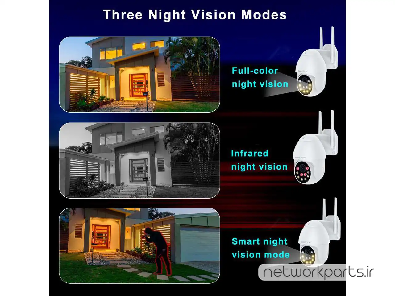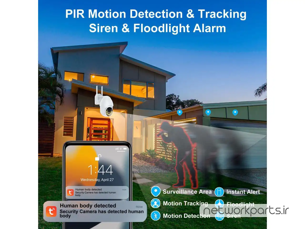 ویژگی ها | 4MP Super HD & PTZ 360°& Waterproof,, Easily handle & Family Share & Data Encryption, Smart AI Detection & Multiple Alerts options,, Three Night Vision Modes & Garden Lights,, Two-way audio & Surveillance Activity Area Setting, |
