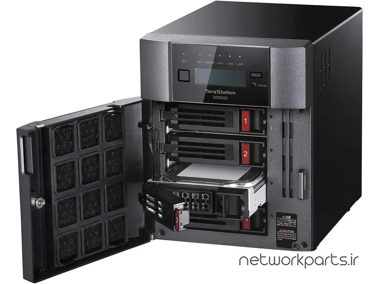 محتویات بسته بندی | 6a Ethernet Cable, AC cable, Front Panel Key, Quick Setup Guide, Setup Media (SD CARD), TeraStation, Warranty Statement |