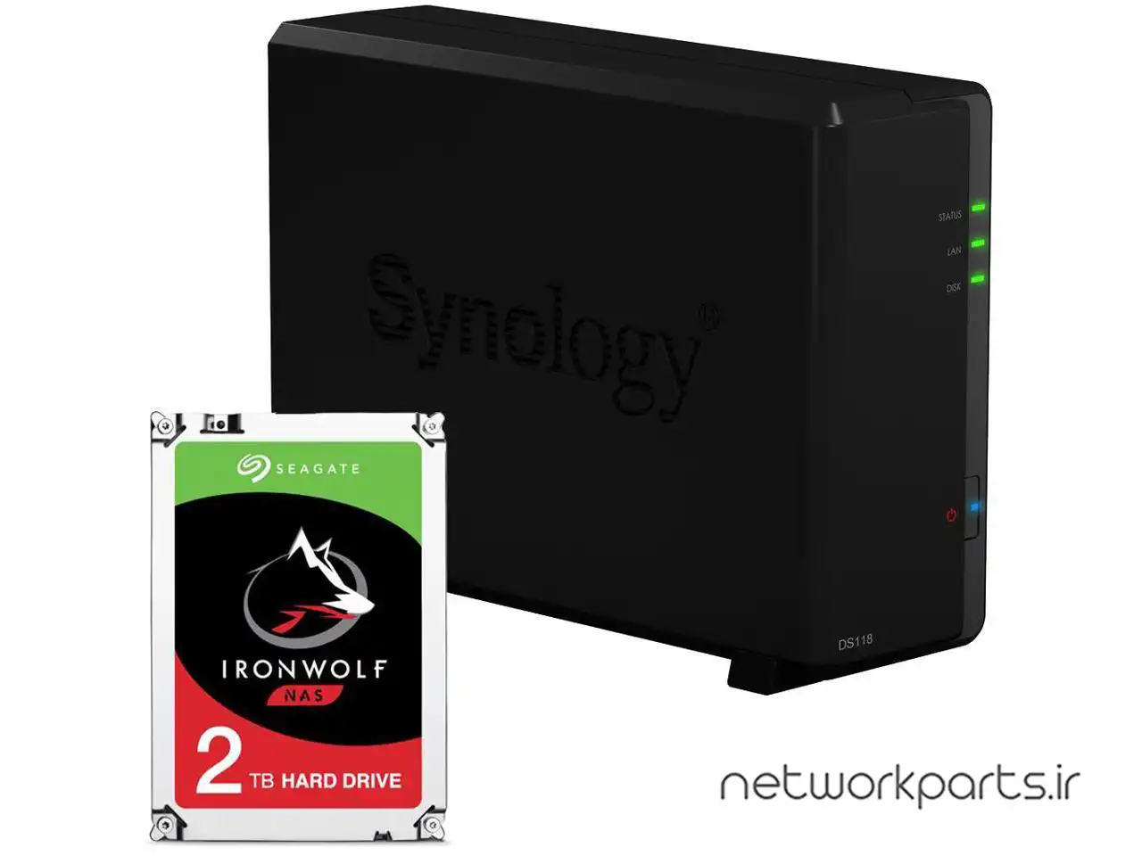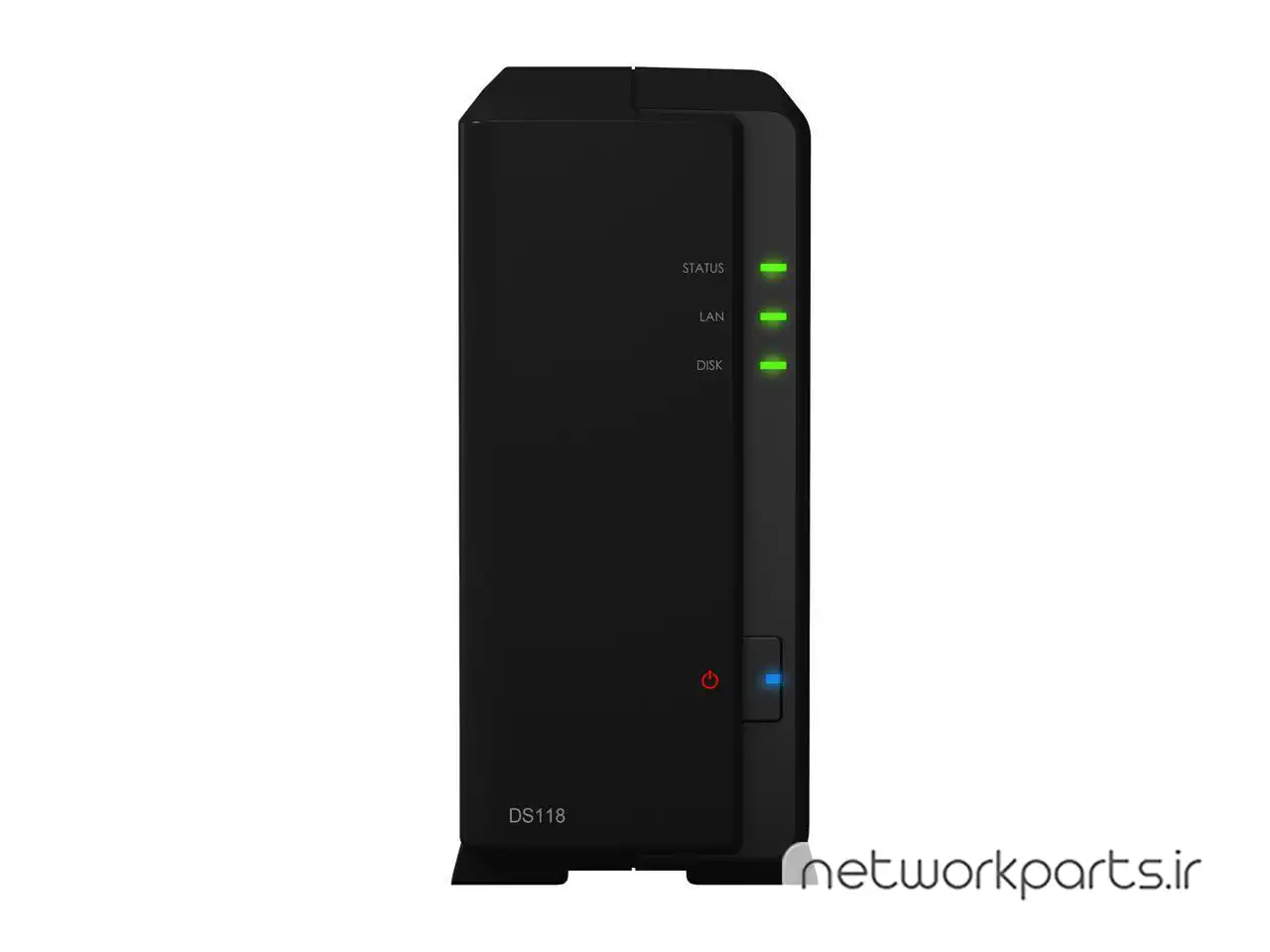 ویژگی ها | 4K 10-bit H.265 video transcoding on the fly, 64-bit quad-core 1.4 GHz processor, High-performance 1-bay NAS for small offices and home users, Running on Synology DiskStation Manager (DSM), Sequential throughput at over 112 MB/s reading and 108 MB/s writing |