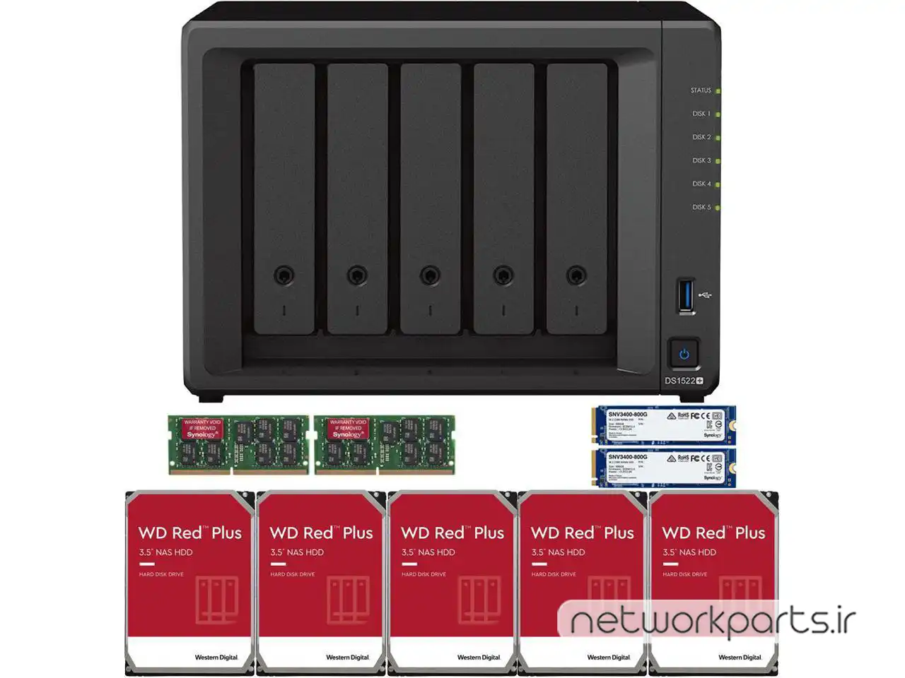 ذخیره ساز تحت شبکه (NAS) سینولوژی (Synology) مدل DS1522+ دارای 30TB (5x 6TB) هارد درایو و 32GB حافظه رم
