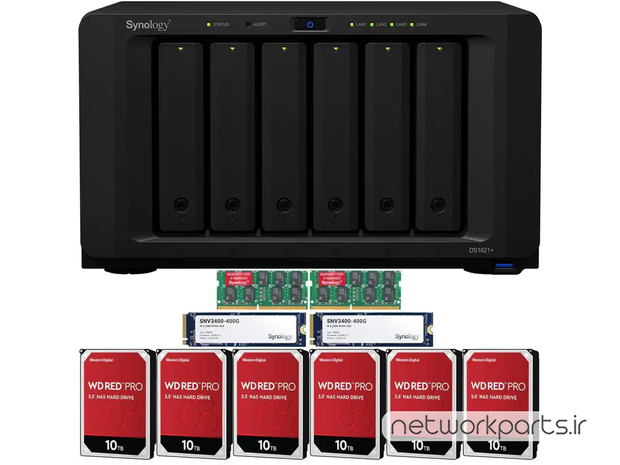ذخیره ساز تحت شبکه (NAS) سینولوژی (Synology) مدل DS1621+ دارای 60TB (6x 10TB) هارد درایو و 32GB حافظه رم