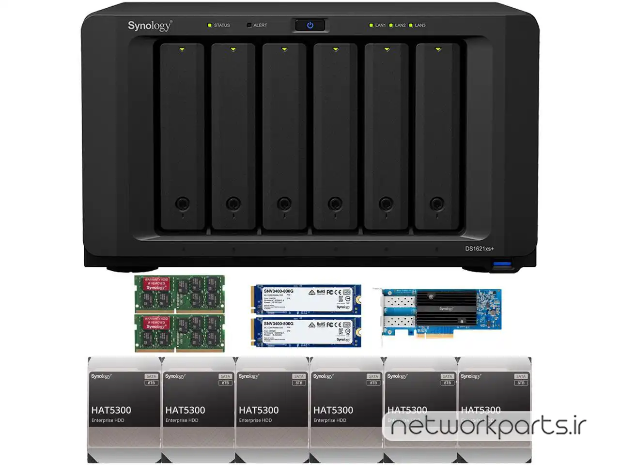 ذخیره ساز تحت شبکه (NAS) سینولوژی (Synology) مدل DS1621XS+ دارای 48TB (6x 8TB) هارد درایو و 32GB حافظه رم