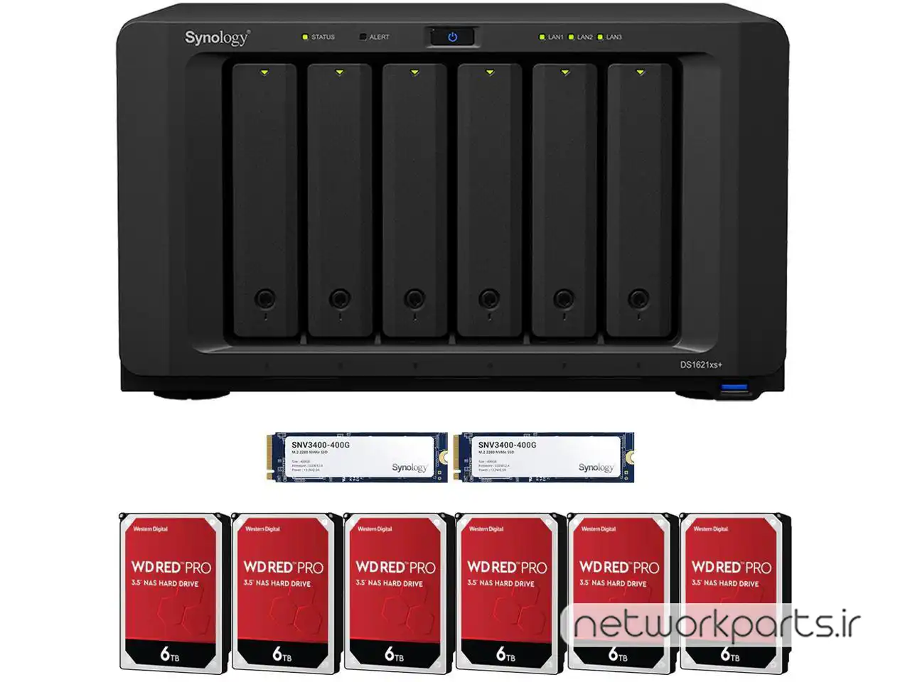 محتویات بسته بندی | AC power adapter, AC Power Cord, Accessory pack, DS1621xs+ main unit, Installed Drives, Quick Installation Guide, RJ-45 LAN cable x 2 |