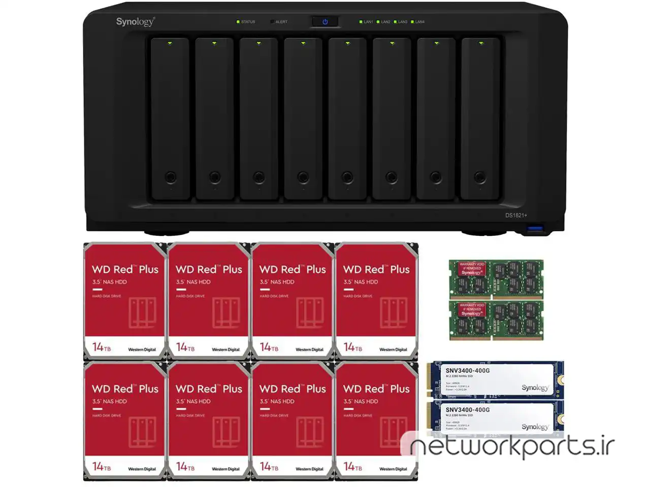 محتویات بسته بندی | Accessory packAC power cord, DS1821+ main unit, Installed Drives, Quick Installation Guide, RJ-45 LAN cable x 2 |