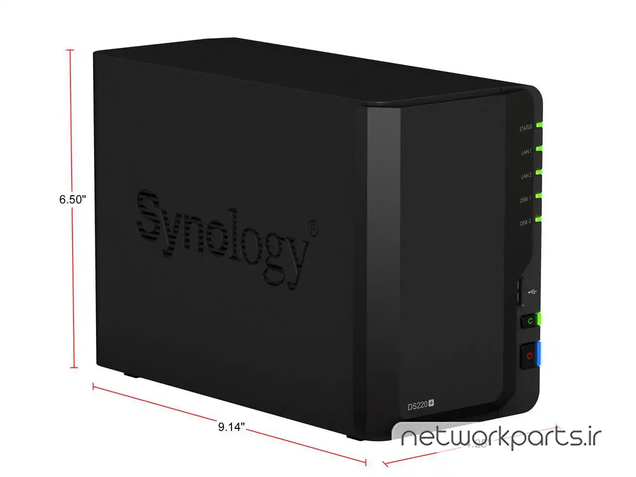محتویات بسته بندی | 1 x AC power adapter, 1 x AC Power Cord, 1 x Accessory pack, 1 x DS220+ unit, 1 x Quick Installation Guide, 2 x RJ-45 LAN cable |