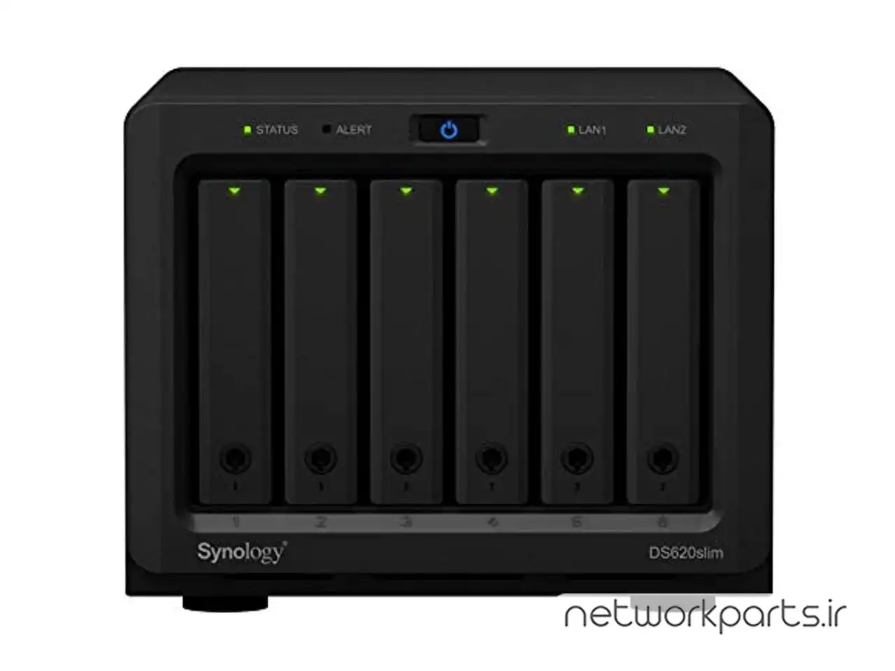محتویات بسته بندی | 1 x AC power adapter, 1 x AC Power Cord, 1 x DS620slim main unit, 1 x Quick Installation Guide, 2 x RJ-45 LAN cable |