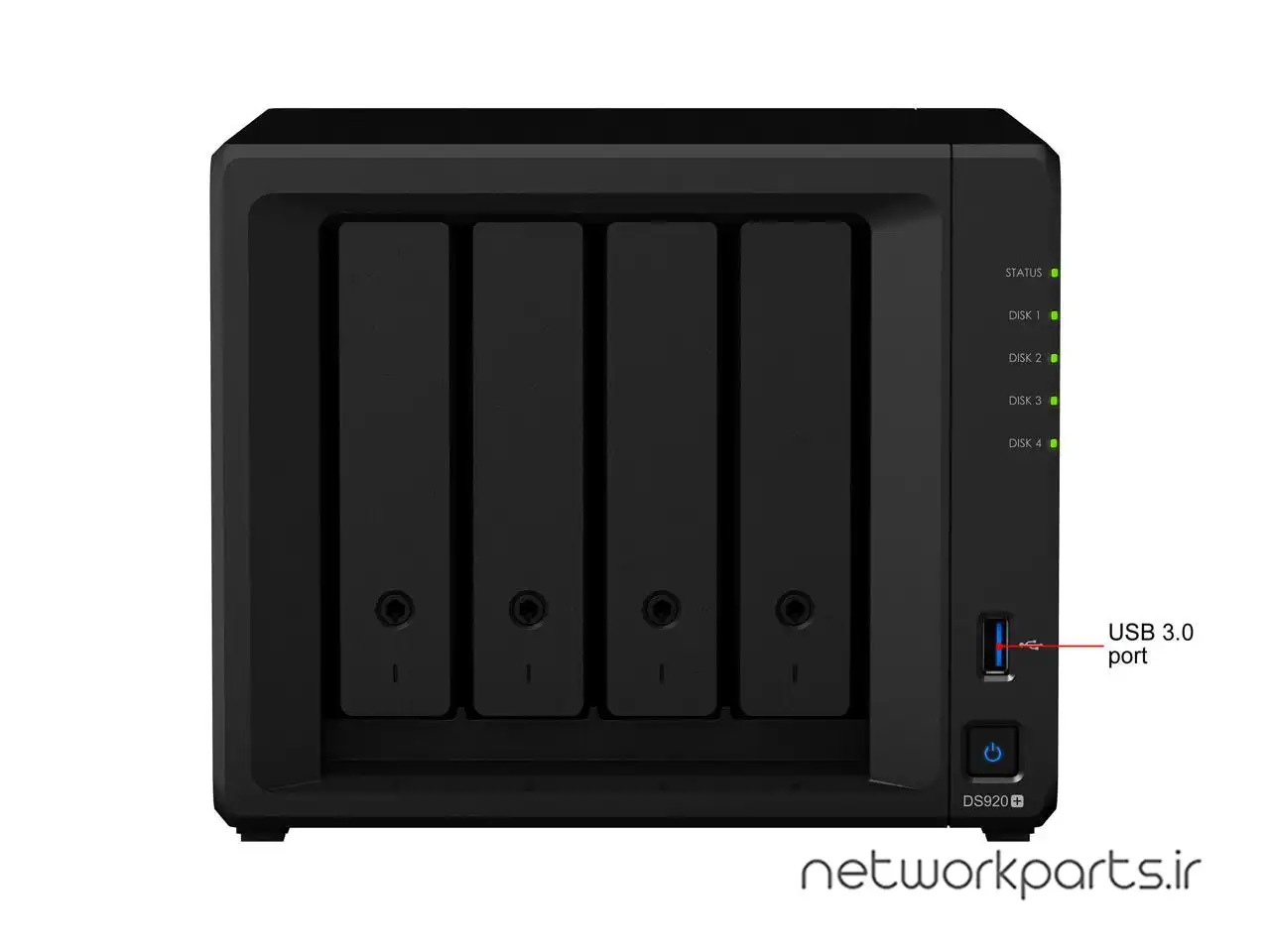 محتویات بسته بندی | 1 x AC power adapter, 1 x AC Power Cord, 1 x Accessory pack, 1 x DS920+ main unit, 1 x Quick Installation Guide, 2 x RJ-45 LAN cable |