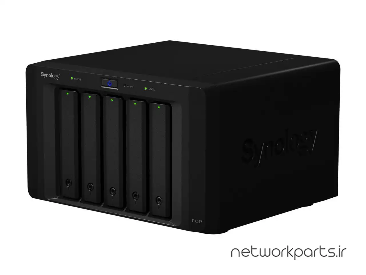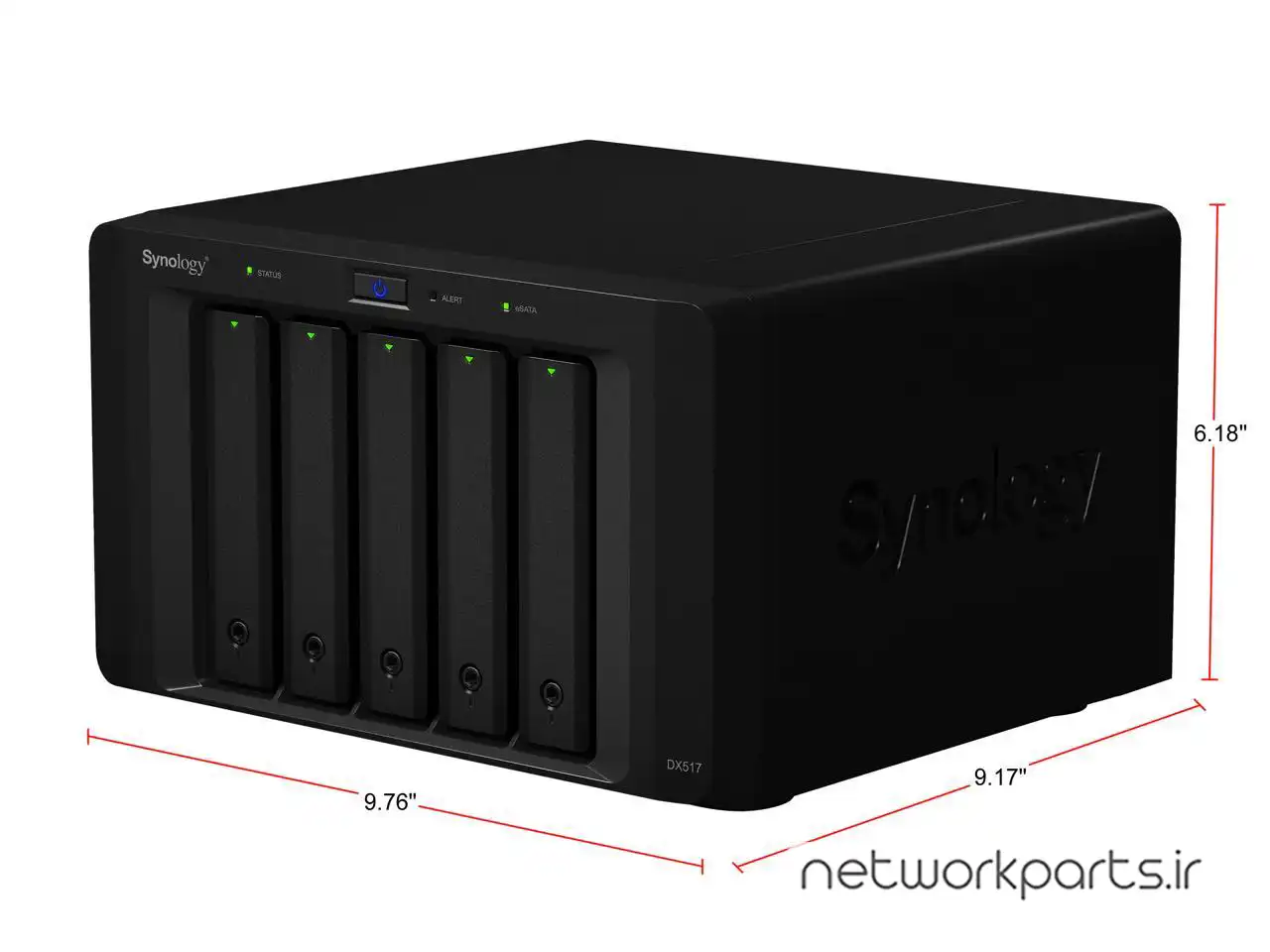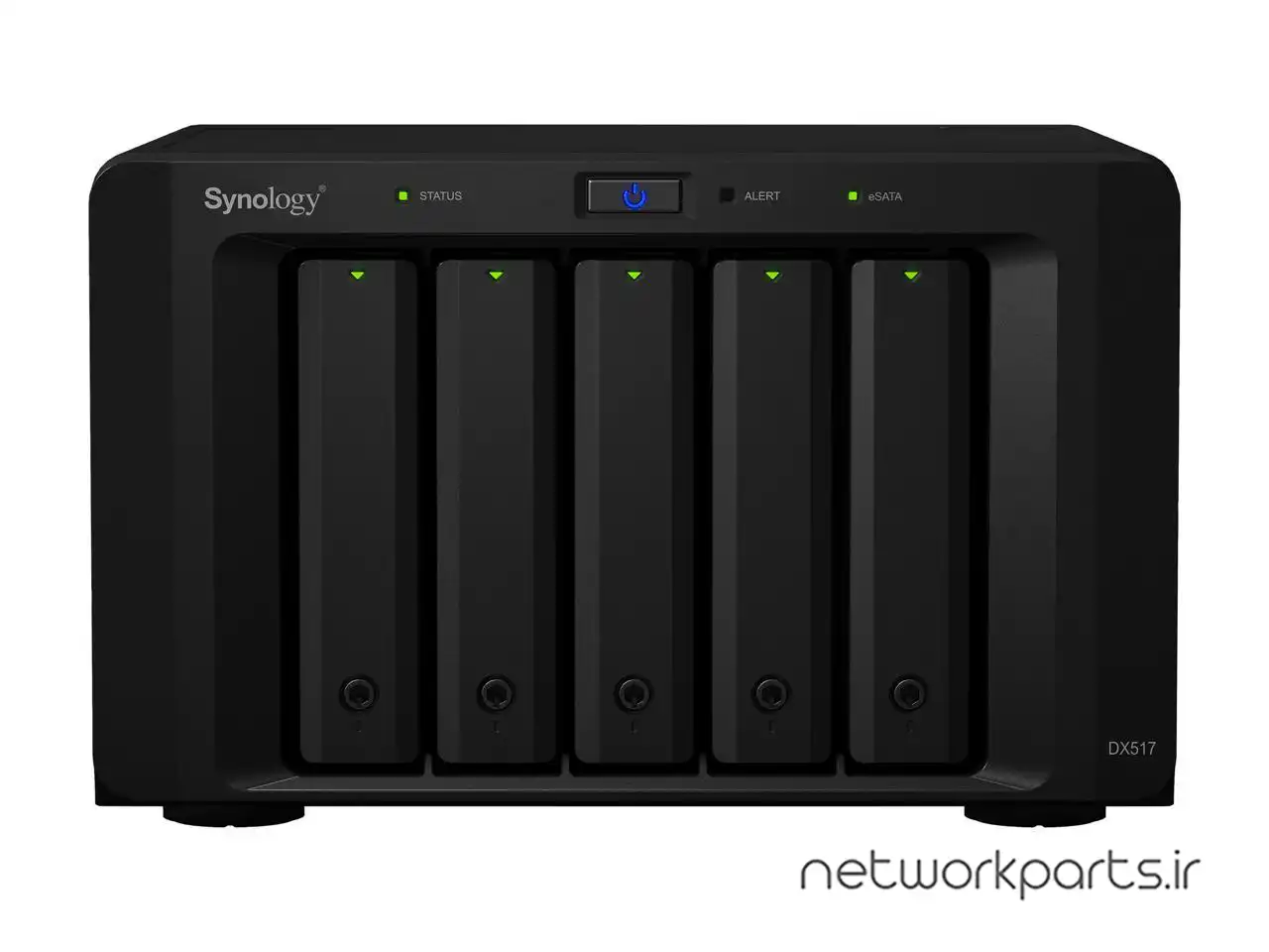 ویژگی ها | 5-bay 3.5" / 2.5" SATA expansion, Dedicated local backup solution, Easily add 5 additional drive bays to Synology DiskStation1. Supporting both 2.5" and 3.5" SATA drives, DX517 is a flexible solution supporting on-the-fly volume expansion or serving as a local backu, Hot-swappable drive tray design, Managed from DiskStation Manager on the host NAS, the additional bays in the DX517 are immediately ready to be used once connected. On-the-fly volume expansion ensures that storage and services on th, Online volume expansion, Synology DX517 can be used as a dedicated local backup solution for the Synology DiskStation. When created as a separate volume, the DX517 provides a great backup solution to its local hard disks in, The hot-swappable drive trays of DX517 allow easy drive installation and replacement without powering down the system. Screwless drive tray design reduces the time needed for system setup. |