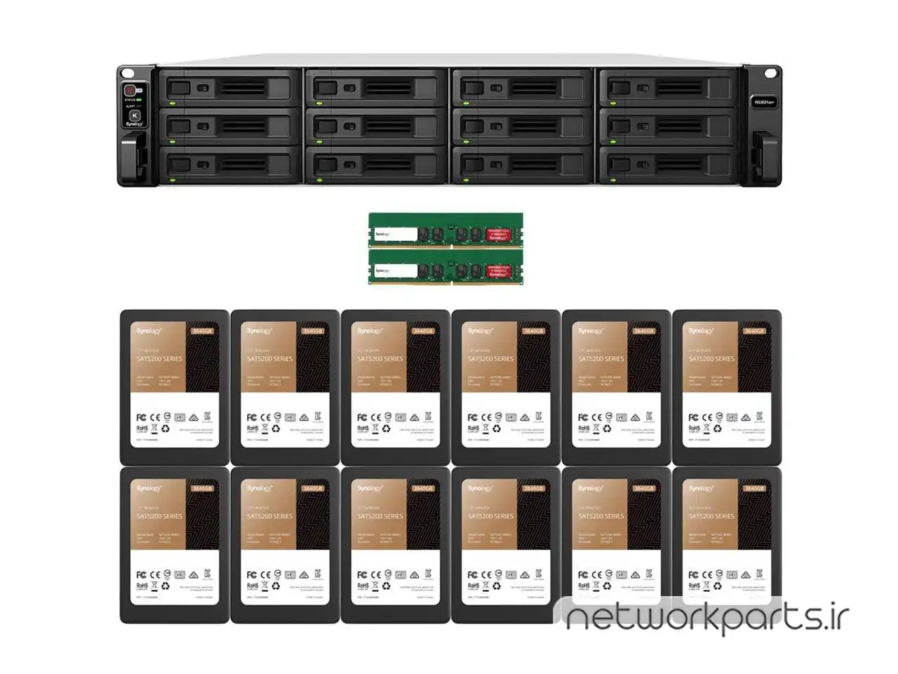 | محتویات بسته بندی | 1 x Accessory pack, 1 x Quick Installation Guide, 1 x RS3621xs+ main unit, 2 x AC power cords, Installed Drives, Installed RAM |