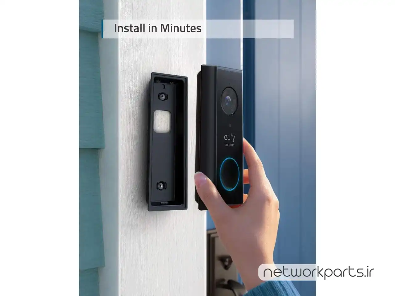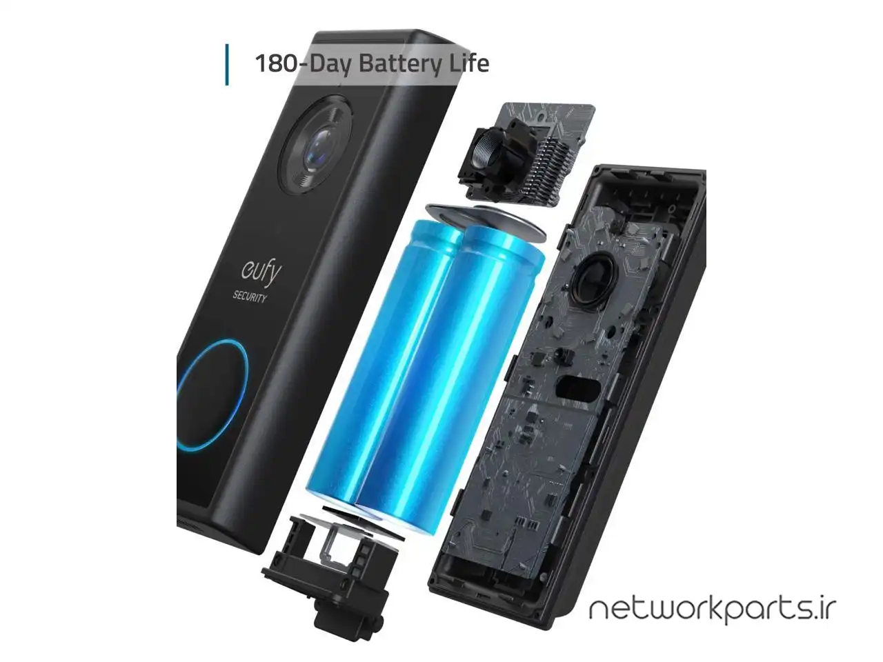 محتویات بسته بندی | Video Doorbell 2K (Battery-Powered), Screw Hole Positioning-Card, Mounting Bracket, 15 degree Wedge, USB Charging Cable, Extension Wires (for Hardwired Connection), Screw Packs, Doorbell Detaching Pi |