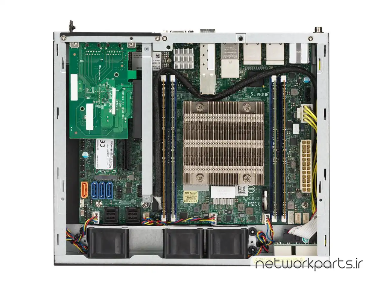 ویژگی ها | 1x Fixed 2.5" drive bay with bracket, 1x M.2 slot M key for SSD, 2242/8, 1x M.2 B Key for SSD/ WAN card, 1x Mini-PCI-E with mSATA Support, 1x PCI-E 3.0 x8 slot, 1x VGA, 2x USB 3.0, 3x 40x 28mm 4-PIN PWM Fan, 4x 1 GbE, 2x 10GBase-T, 2x 10G SFP+ and 1x dedicated LAN for IPMI 2.0, Intel Xeon processor D-2146NT, 8-Core, 16 Threads, 80W, Low-noise DC Power Supply, System on Chip, Up to 512GB ECC LRDIMM, up to 256GB ECC / non-ECC RDIMM DDR4-2666 MHz; in 4 DIMM slots |