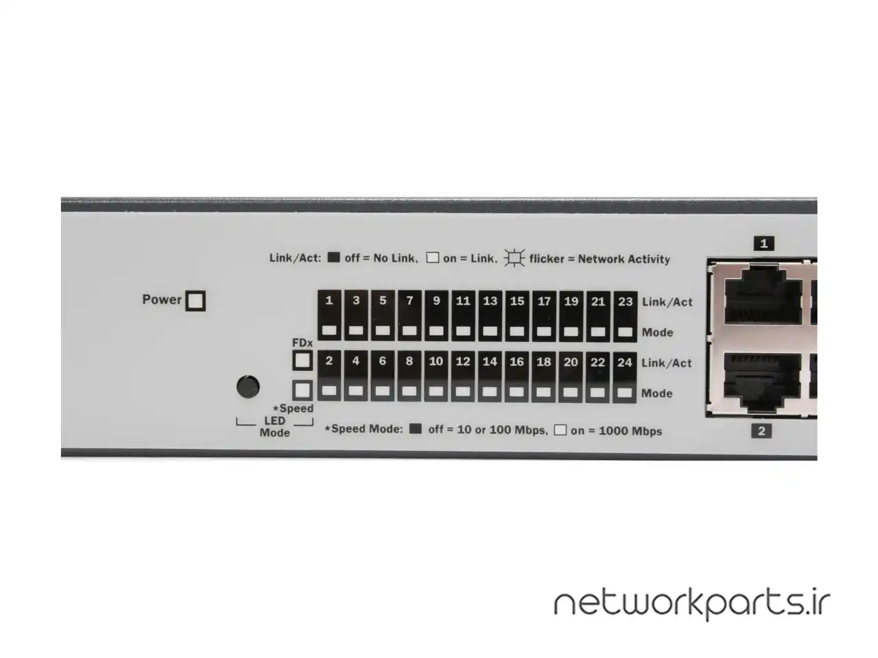 پورت های اصلی | 22 xauto-sensing 10/100/1000 ports (IEEE 802.3 Type 10Base-T, IEEE 802.3u Type 100Base-TX, IEEE 802.3ab Type 1000Base-T), 2x dual-personality ports, each port can be used as either an RJ-45 10/100/1000 port (IEEE 802.3 Type 10Base-T; IEEE 802.3u Type 100Base-TX; IEEE 802.3ab 1000Base-T Gigabit Ethernet) or an open mini-GBIC slot (for use with min |