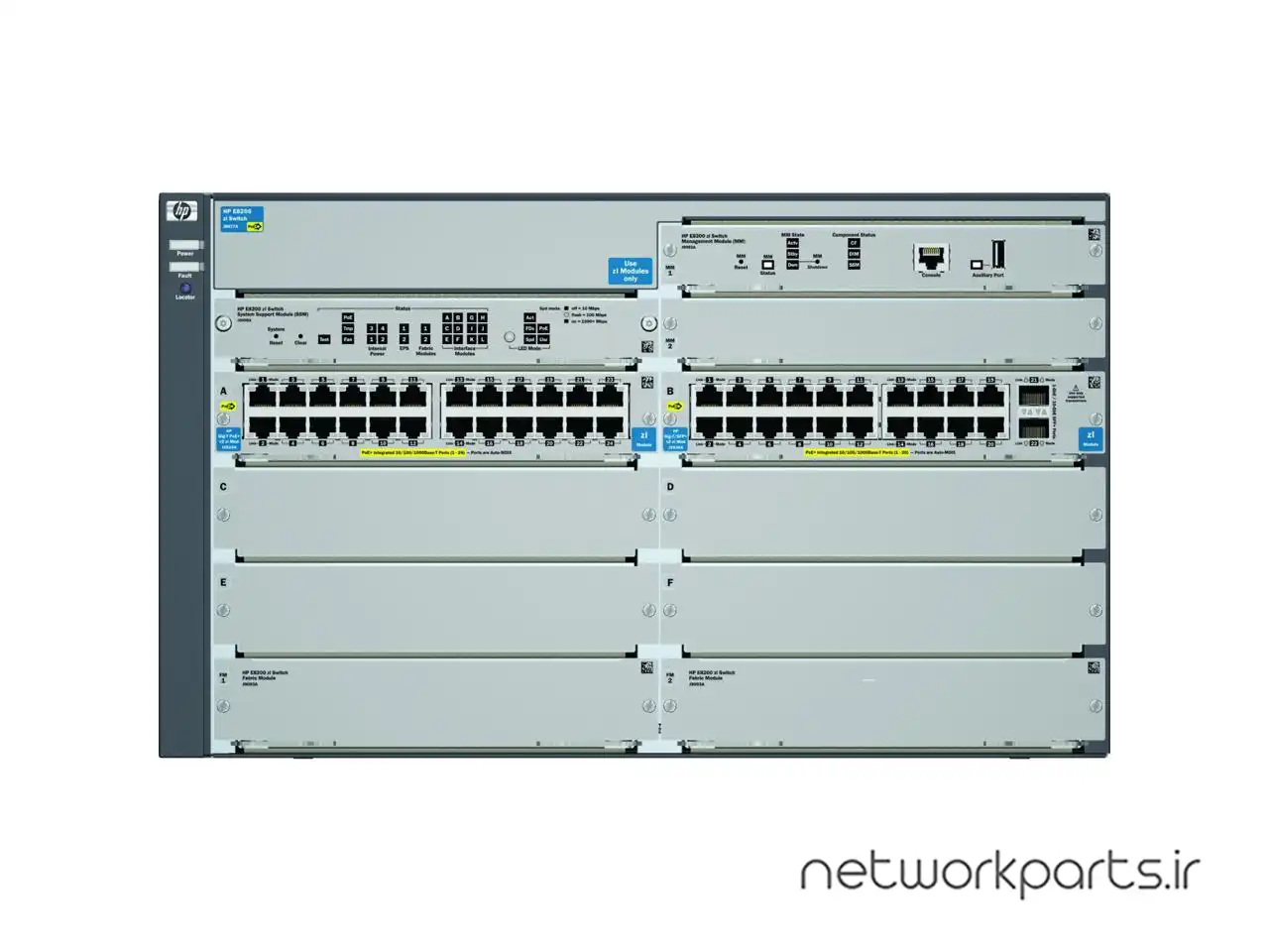 ویژگی ها | *Supports a maximum of 144 autosensing 10/100/1000 ports or 48 10-GbE ports or 144 mini-GBICs, or a combination, 2 SFP+ 10-GbE ports, 4 open module slots, 44 RJ-45 autosensing 10/100/1000 PoE+ ports, Denial of service protection: CPU DoS Protection, Gigabit module : ARM9 @ 200 MHz, packet buffer size: 144 Mb QDR SDRAM; 10G module : ARM9 @ 200 MHz, packet buffer size: 36 Mb QDR SDRAM; Management module : Freescale PowerPC 8540 @ 666 MHz, 4 MB fla, Memory and processor:, Ports:, Routing table size: 10000 entries, Routing/switching capacity: 496.8 Gbps, Switch fabric speed: 561.6 Gbps, Throughput: up to 369.6 million pps |