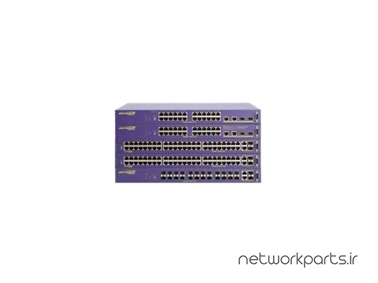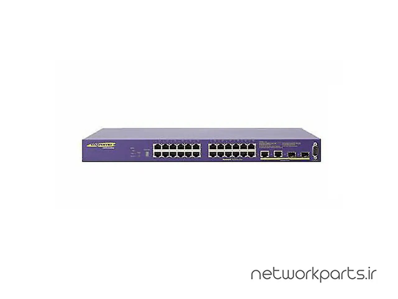 پورت های اصلی | 1x 10/100BASE-T out-of-band management port, 1x serial (console port), 24x 10/100BASE-T PoE with auto-speed and auto-polarity, 2x Gigabit Ethernet (100/1000BASE-X SFP, shared PHY with 2 10/100/1000BASE-T ports), 2x SummitStack stacking interfaces |