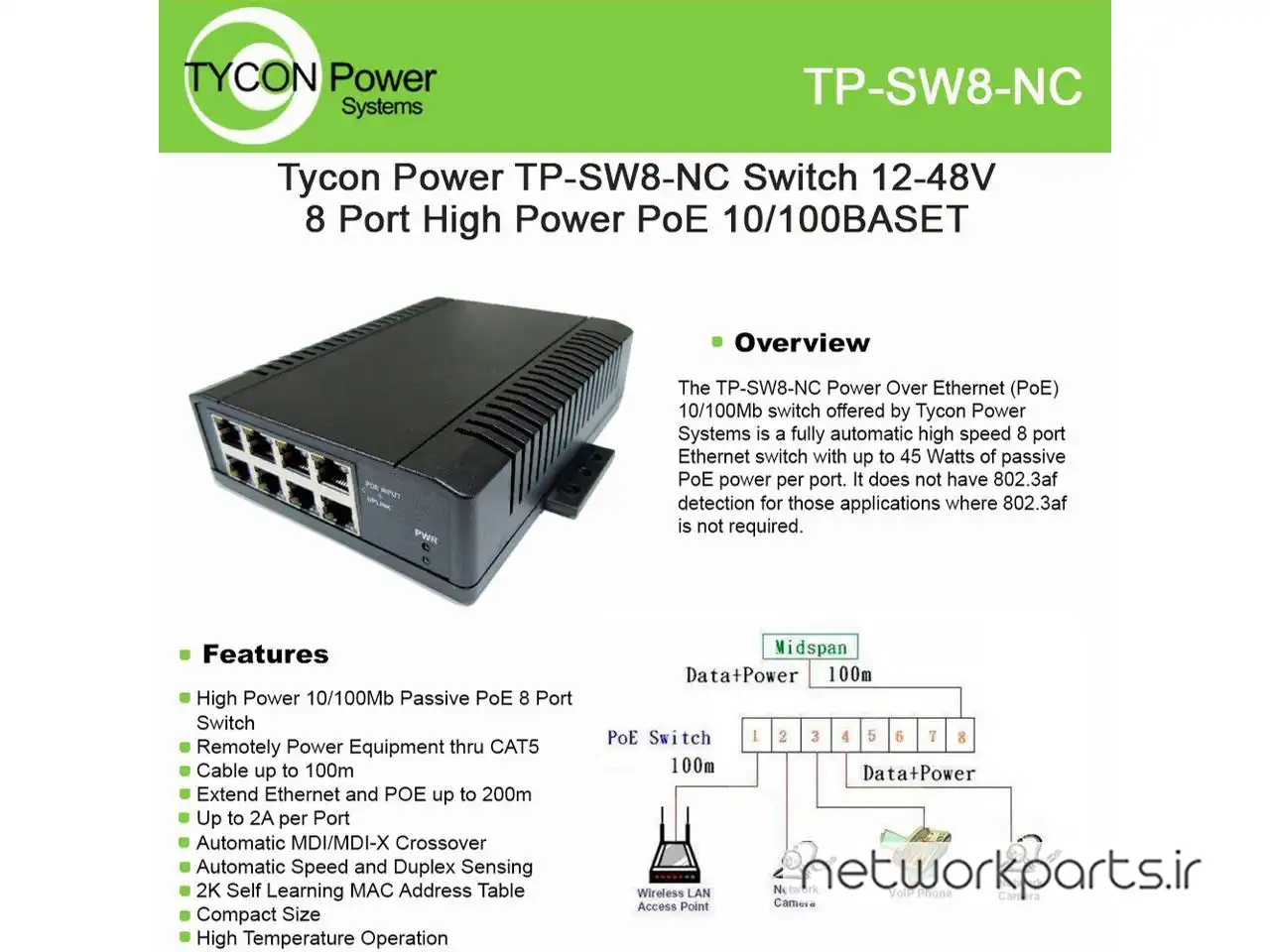 | پورت های اصلی | 7x Fast Ethernet Network 1x Fast Ethernet Uplink |