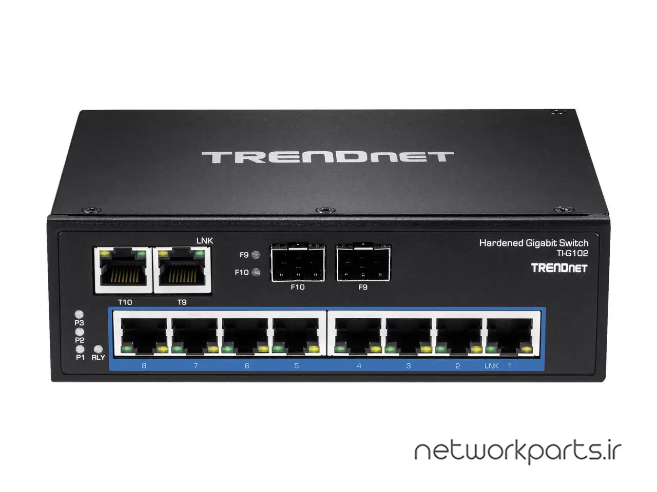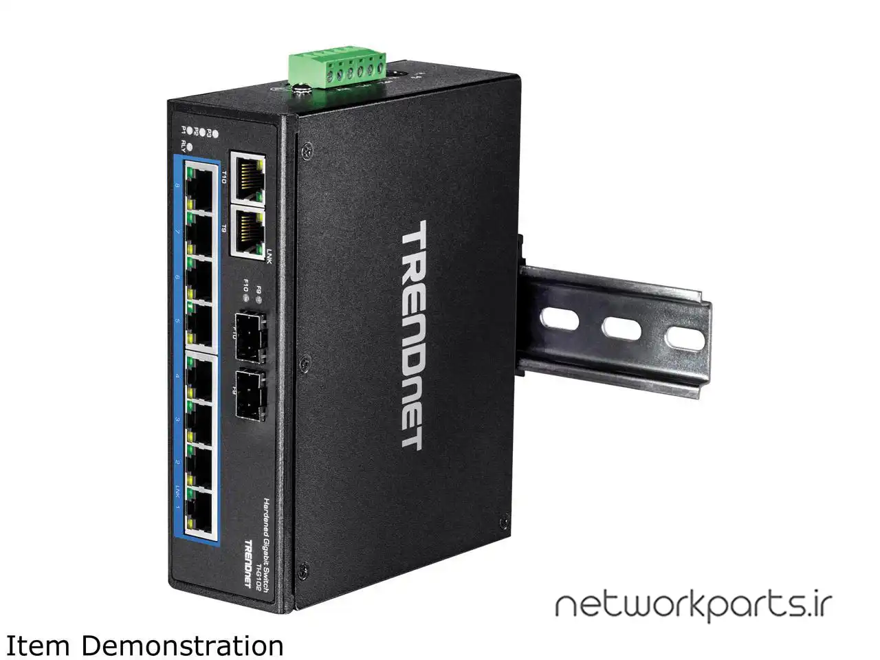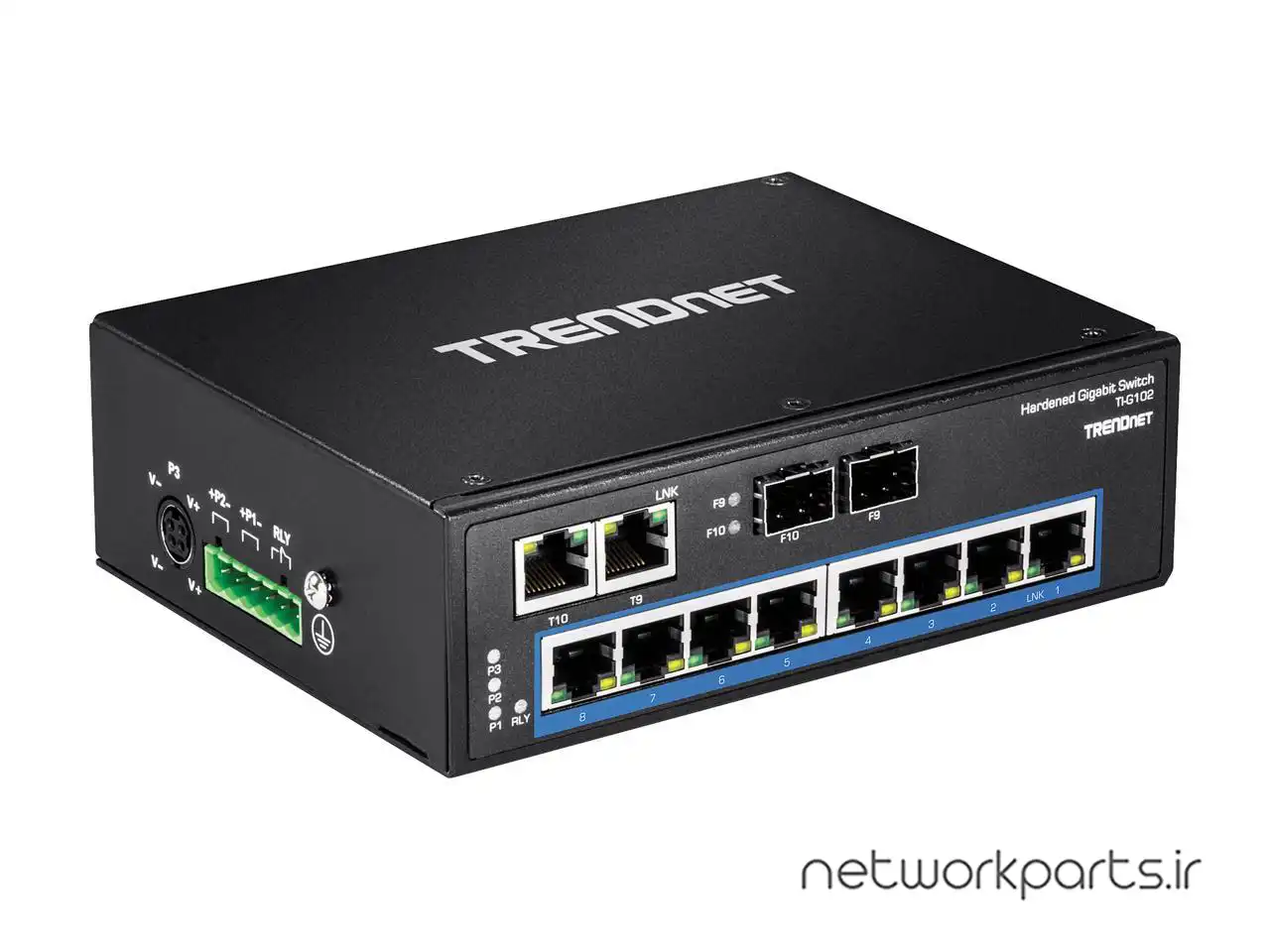 پورت های اصلی | 2x Gigabit Ethernet ports, 2x Shared SFP slots, 6-pin removable terminal block, 8x Gigabit ports, DIN-Rail mount, Grounding point, LED indicators, Wall mount |