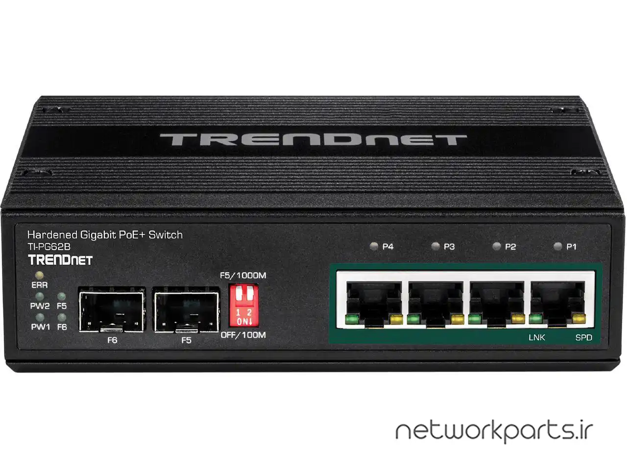ویژگی ها | 12 Gbps switching capacity, 2 x dedicated SFP slots, 4 x Gigabit PoE+ ports, 60 - 120 W power budget, Alarm output triggered by power failure, Dual redundant 12-56 VDC power inputs with overload current protection, Extreme -40 - 75 degree C (-40 - 167 degree F) operating temperature range, Hardened IP30 rated metal switch, Includes DIN-rail and wall mounts, Power supply sold separately (models:) |