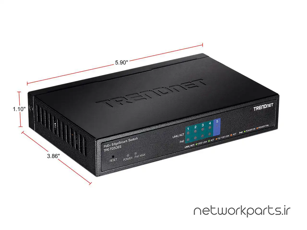 ویژگی ها | 1 x Gigabit port, 10 Gbps switching capacity (2 Gbps per port with full duplex), 31W PoE power budget, 4 x Gigabit PoE+ ports, Bandwidth control per port, Compact fanless design, Easy-to-use web-based management interface, IEEE 802.1p QoS with queue scheduling support, Supports static link aggregation, RSTP, VLAN, QoS, and IGMP Snooping, Voice VLAN for VoIP applications, Wall mountable metal housing |