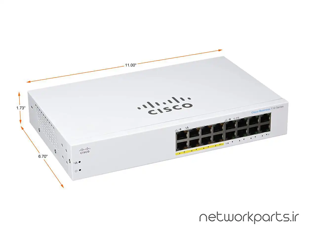 محتویات بسته بندی | Cisco Business 110 Series switch, Mounting Kit, Power cord or adapter, Quick Start Guide |