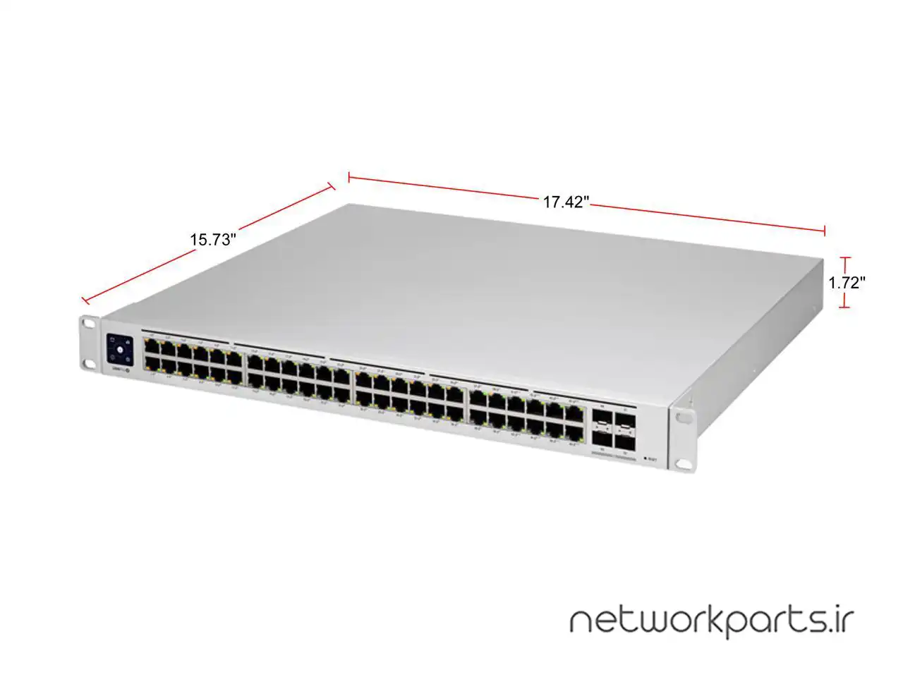 ویژگی ها | (4) 10G SFP+ ports, (40) Gigabit RJ45 802.3at PoE+ ports, (8) Gigabit RJ45 802.3bt PoE++ ports, 1.3" touchscreen display, 600W maximum PoE power, Layer 2 and Layer 3 features, Managed by UniFi Network Controller, Near-silent cooling, UniFi SmartPower RPS DC input |