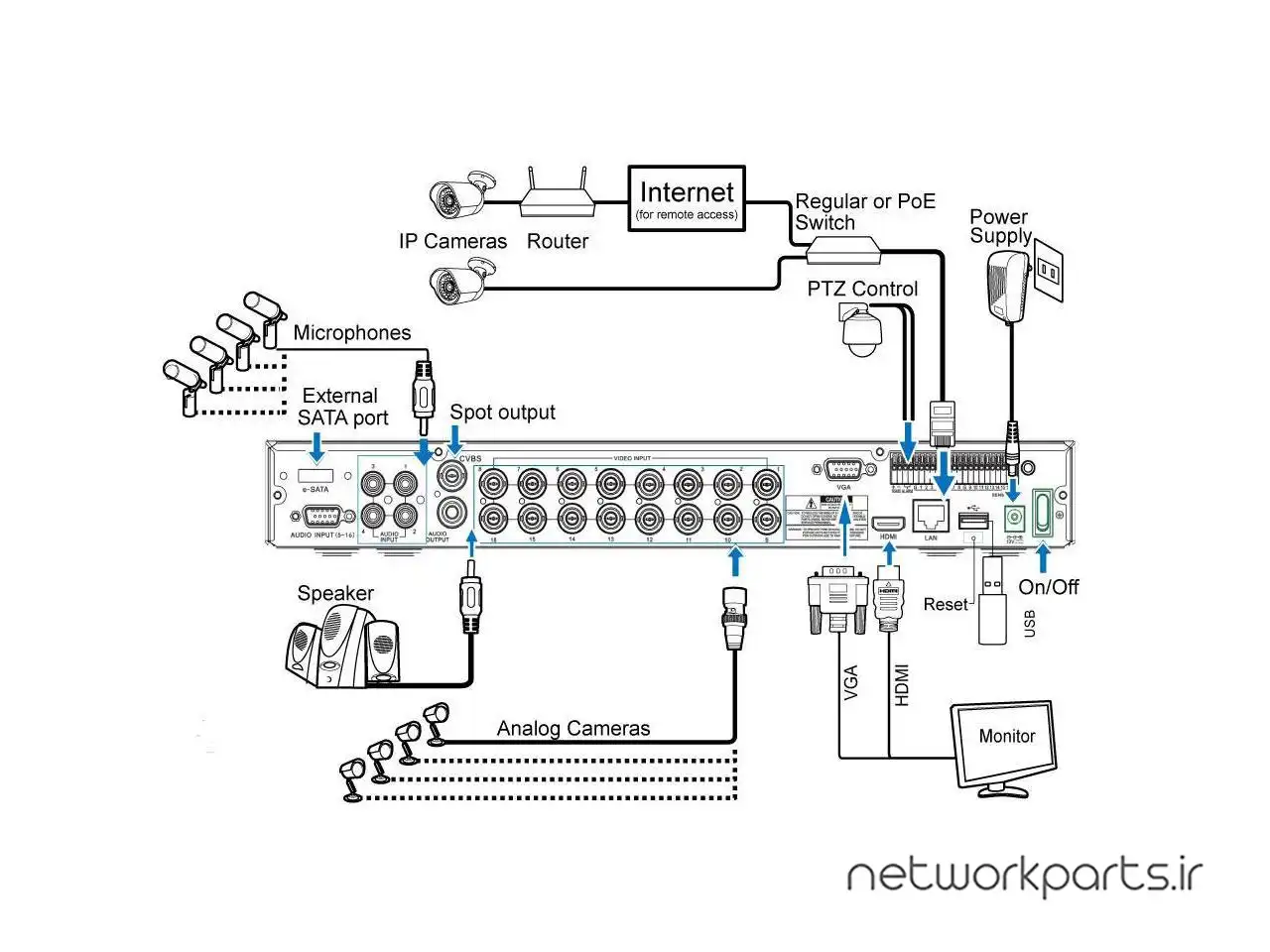 ویژگی ها | Analog channels can be converted to IP, if no analog channels are used, you can add up to 24 IP cameras |
