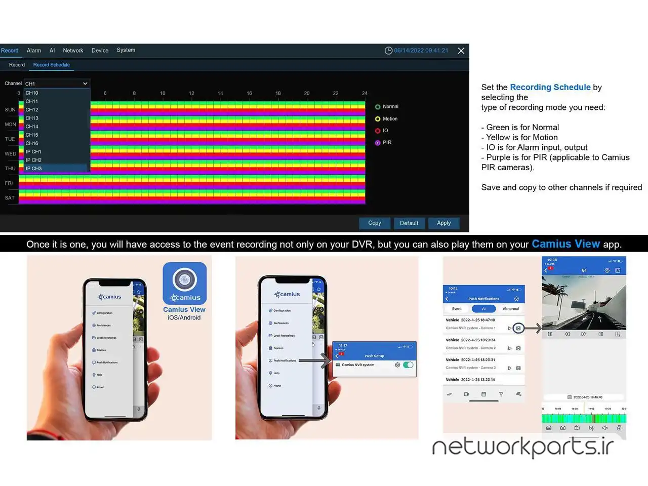 کنترل از راه دور | PC, Mac DVR software, Browser, Camius View app |