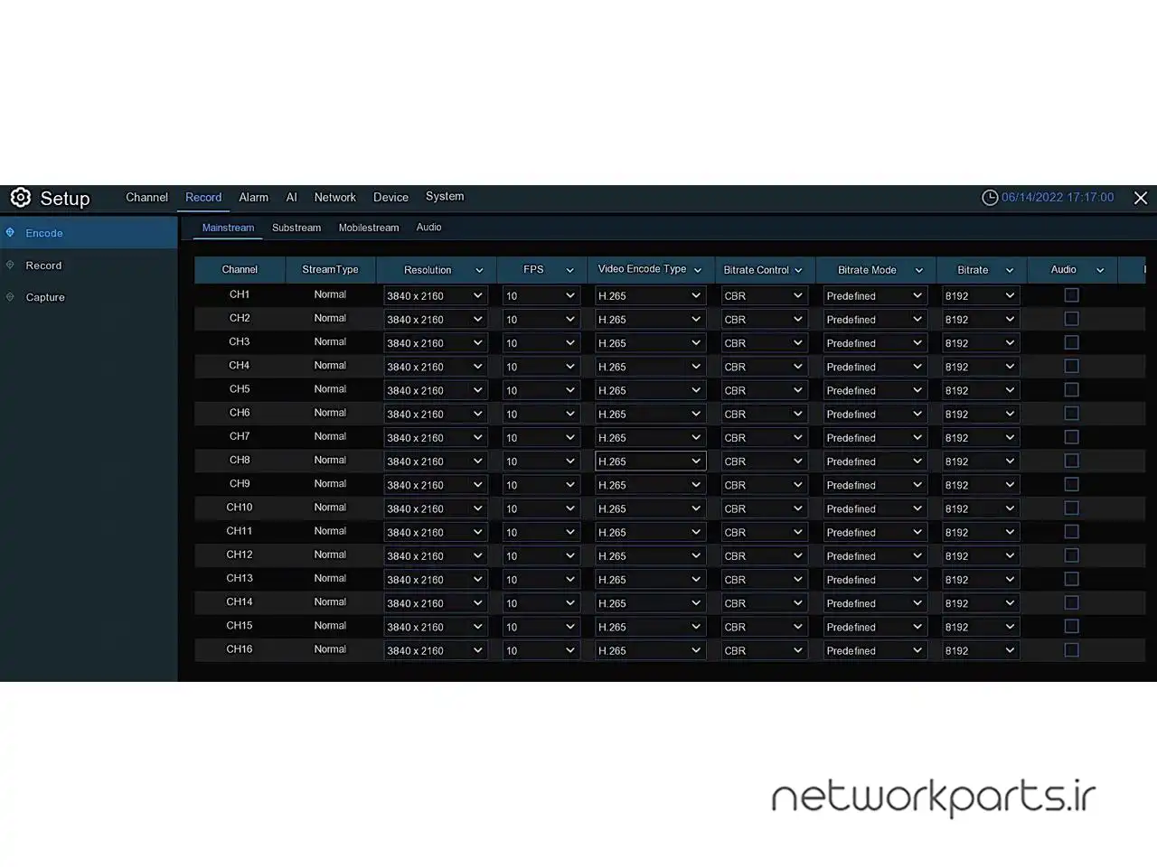فرمت فشرده سازی | H.264, H.265, G711a |