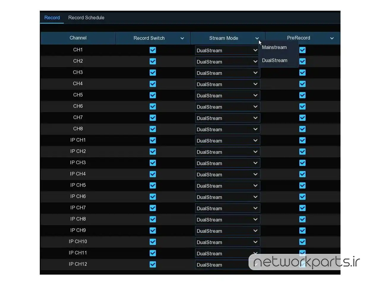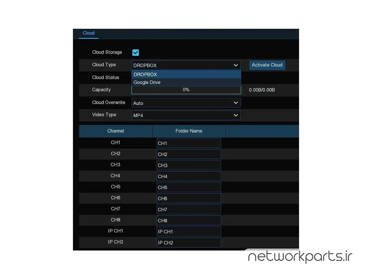 درگاه اتصال شبکه | RTSP/HTTPS/TCP/UPNP/P2P/DDNS/DNS/IP FILTER |