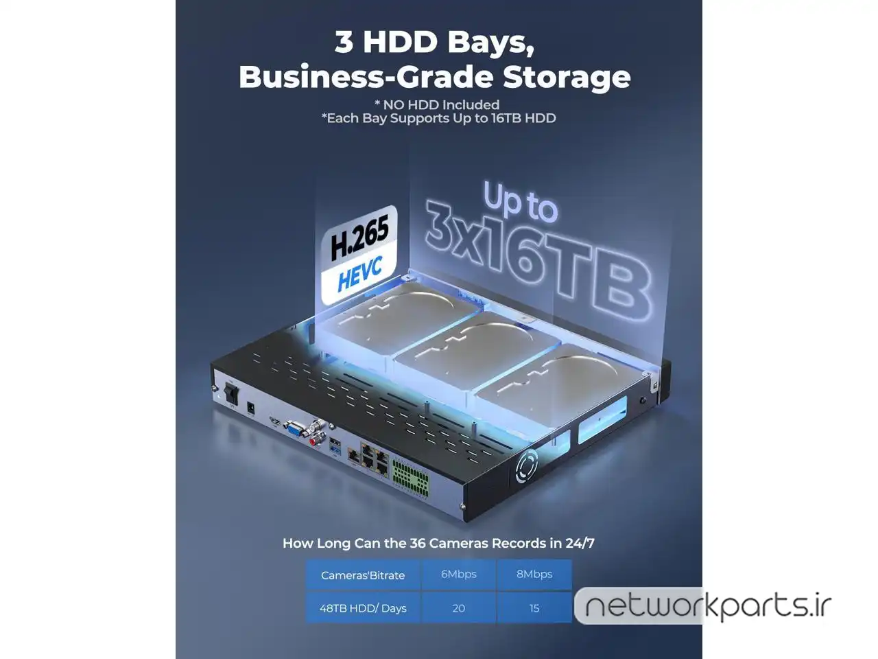 ضبط کننده ویدیویی NVR ریولینک (Reolink) پشتیبانی از 36 کانال مدل RLN36