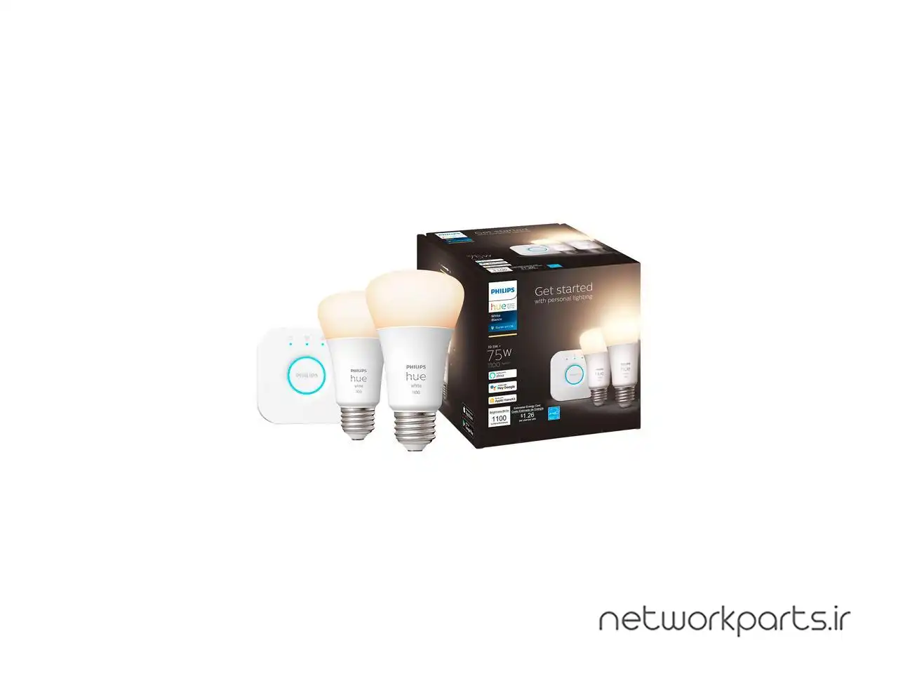 محتویات بسته بندی | 1x Bridge, 1x Ethernet network cable, 1x Power adapter, 2x Hue bulbs |