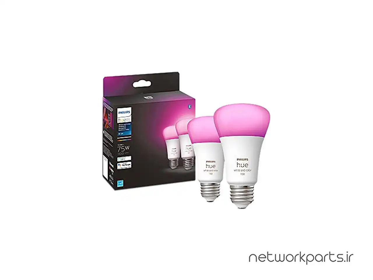 ویژگی هاBulb dimensions: 62x112mm, Bulb technology: LED, Color temperature: 2000-6500 K, Communication protocol: Bluetooth and Zigbee, Diameter: 62 mm, Dimmable with Hue app and switch: Yes, Energy label (acc (EU) 874/2012; A++ - E): Not applicable, Environmental, Extra feature/accessory incl., Fitting: E26, Form factor: A19, Height: 112 mm, HomeKit compatible: Yes, Input voltage: 110V-130V, IOS: Yes, Lifetime: 25000 Hours, Light output: 16 million colors, Lumen output at 2700K (out-of-the-box setting): 800 lumen, Lumen output at 4000K: 1,100 lumen, Lumen output: 1100 lm @ 4000K, Max. operation power: 10.5 W, Max. standby power: 0.2 W, Number of switching cycles: 50,000, Operational humidity: 5% <H<95% (non condensing), Operational temperature: -20°C to 45°C, Philips Hue App: IOS 13 and aboveAndroid 8.0 and above, Philips Hue Bluetooth App: Android 7.0 and laterIOS 11 and later, Power Factor: >0.5, Rated lifetime: 25,000 hour(s), Software upgradable: when connected to Bluetooth App or Hue Bridge, Software upgradable: Yes, Start up: Instant 100% light output, Technical specifications, The bulb:, Voice assistants: Amazon AlexaApple HomeKit (Via Hue Bridge)Google AssistantMicrosoft Cortana (Via Hue Bridge), Wattage equivalent: 75 W, Wattage: 10.5 W, Weight: 70g, What&apos;s supported: