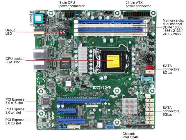 مادربرد سرور ازراک (ASRock) مدل E3C246D4U فرم فاکتور MicroATX سوکت LGA1151