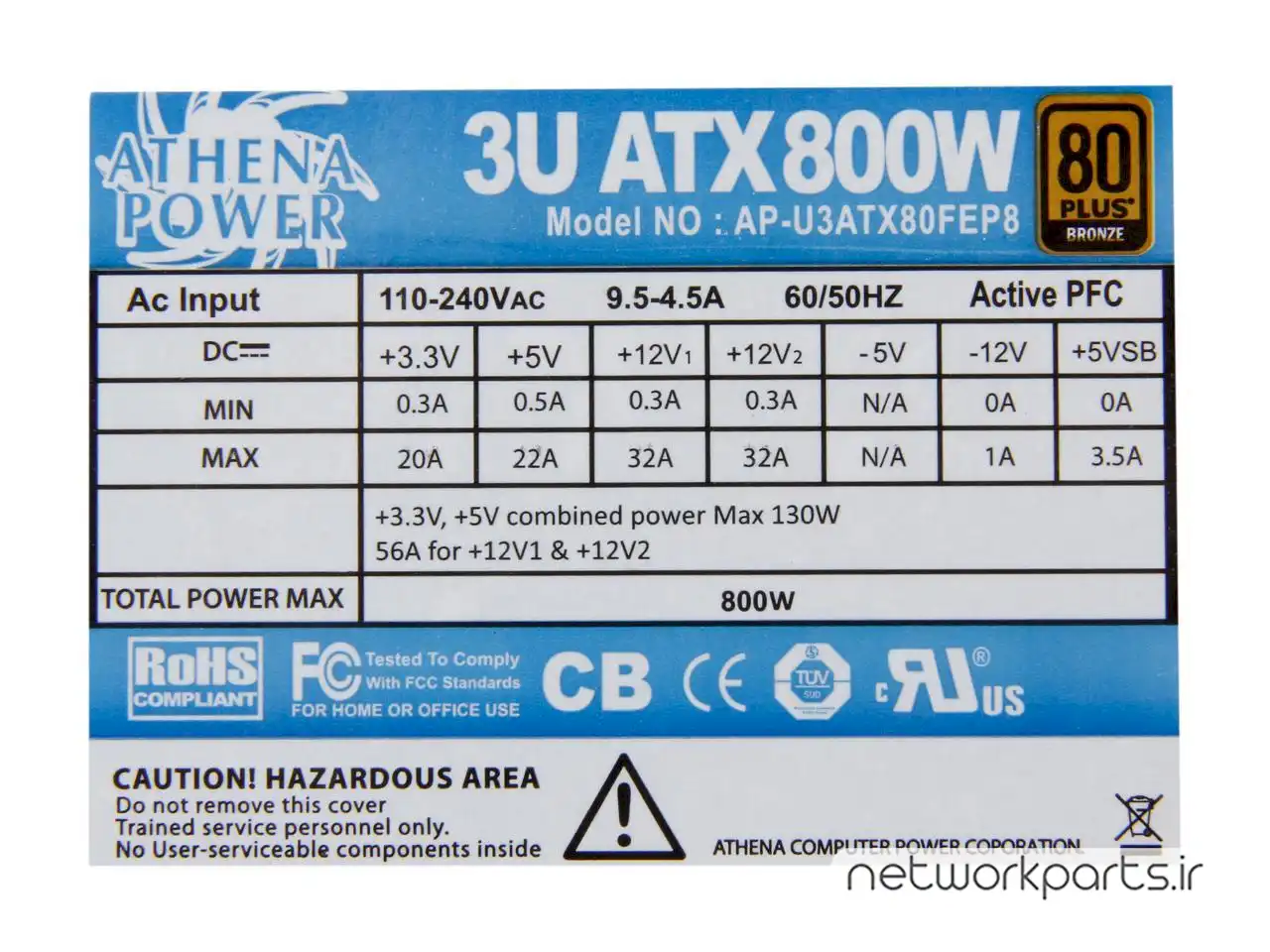 خروجی+12V2@32A,-12V@1A, +3.3V@20A,+5V@22A,+12V1@32A, +5VSB@sz3.5A